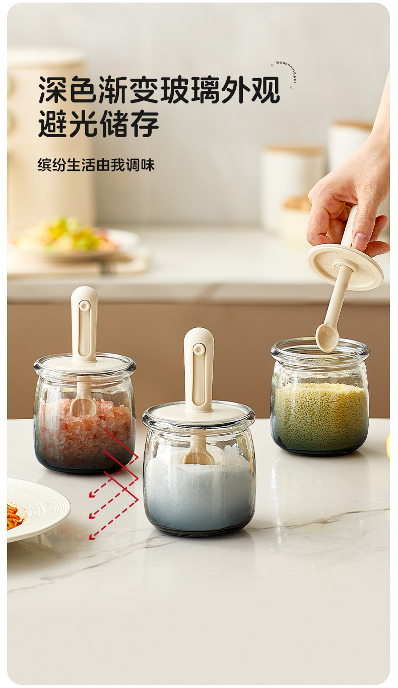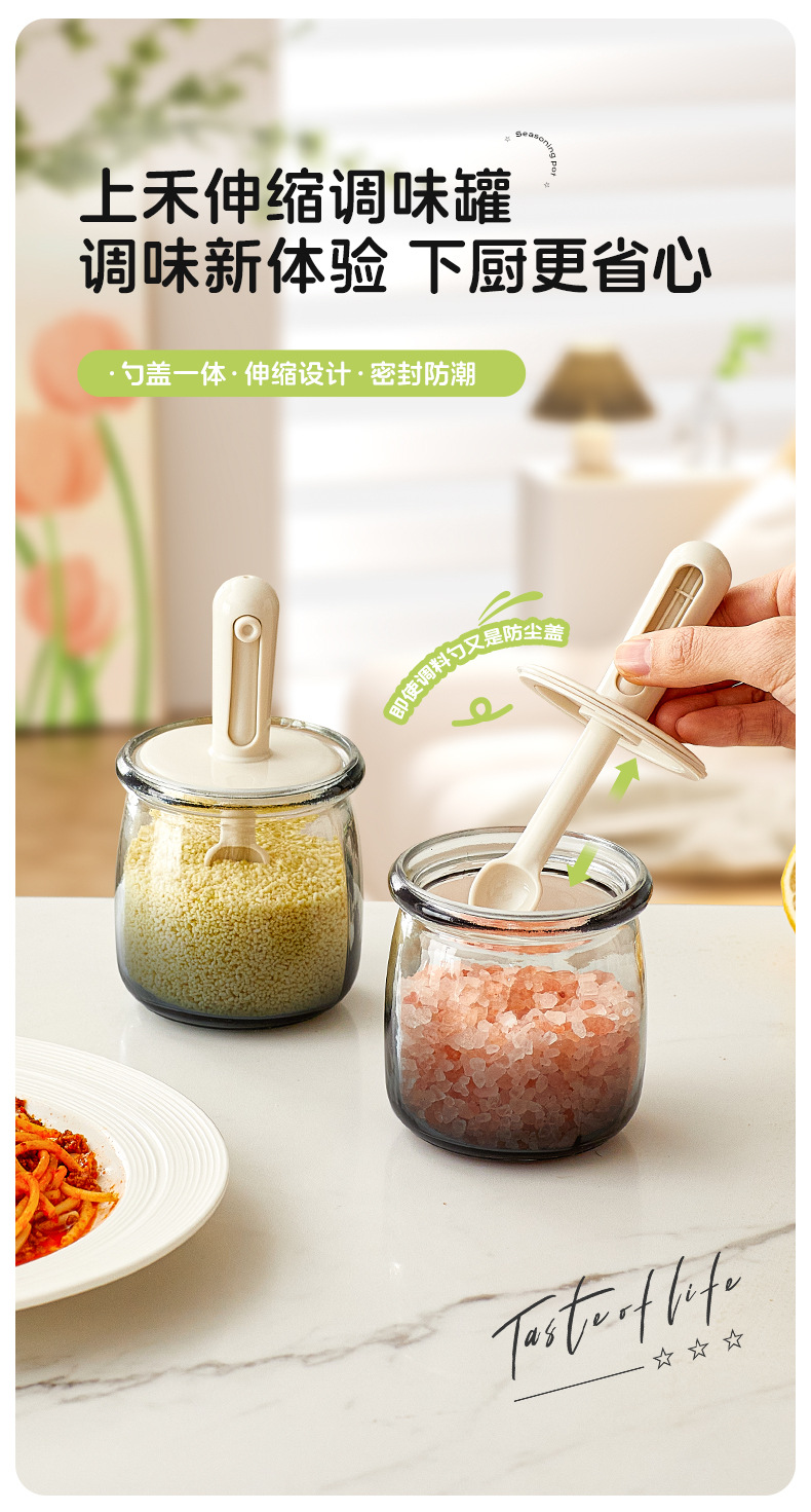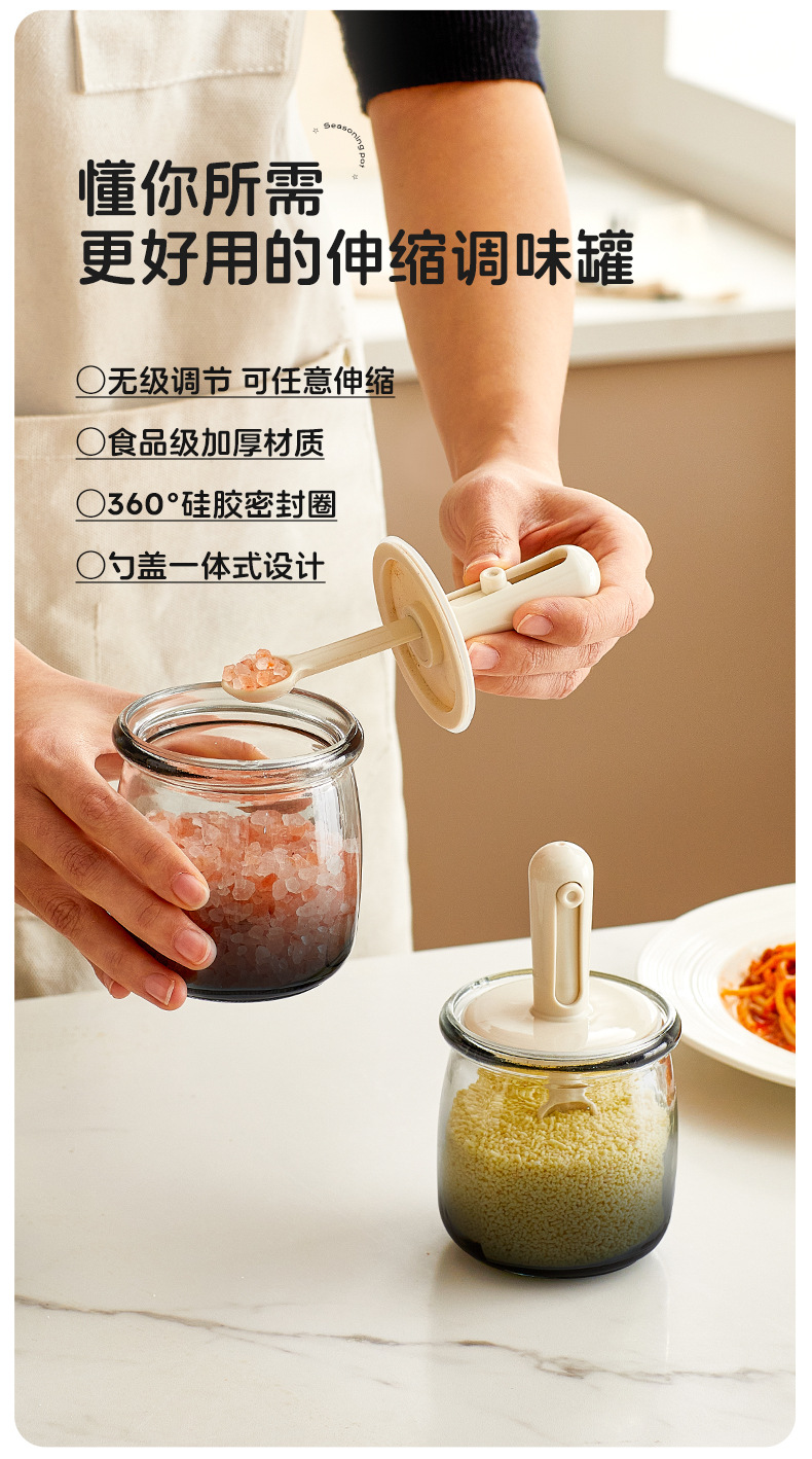 上禾伸缩调味罐密封调味盒家用味精储存盒玻璃调味罐防潮密封盐罐