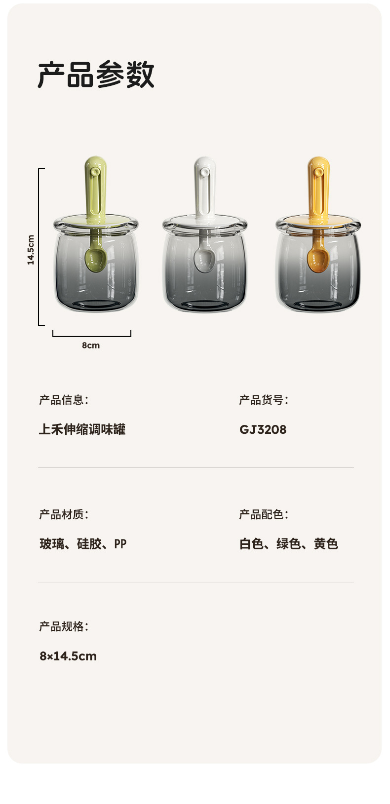 商品名称:上禾伸缩调味罐密封调味盒家用味精储存盒玻璃调味罐防潮密封盐罐