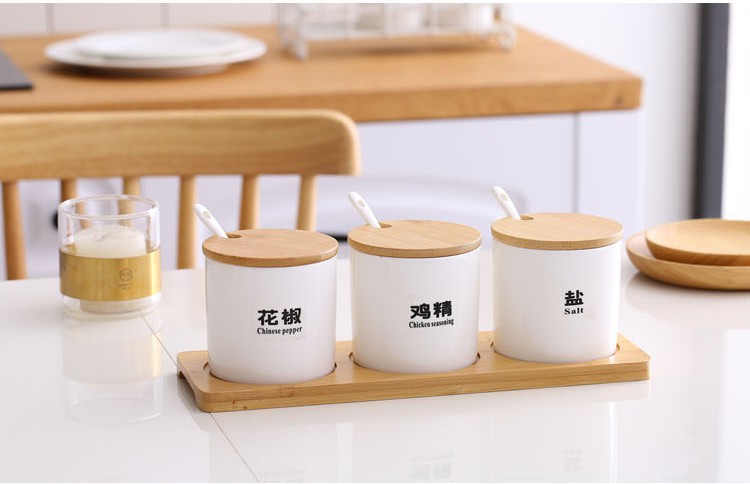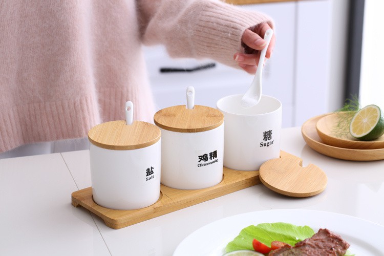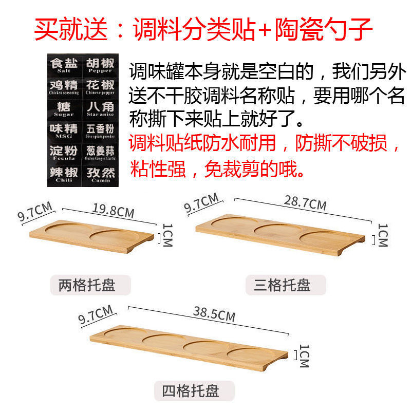 ✿盖勺一体三个罐+竹托盘+贴纸✿
