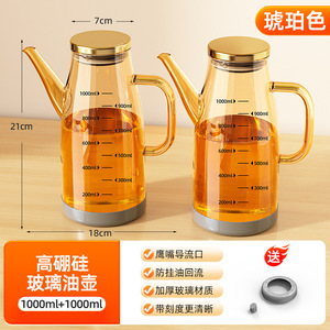 【琥铂色】1000ml+1000ml高硼硅玻璃|耐热防爆油壶【 2个装】
