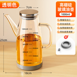 【透明色】1000ml高硼硅玻璃|耐热防爆油壶【 1个装】