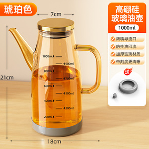 【琥铂色】1000ml高硼硅玻璃|耐热防爆油壶【 1个装】