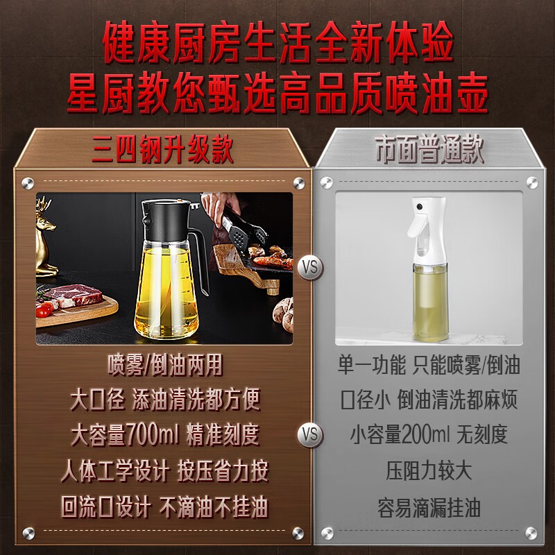 【不滴不挂油】喷/倒两用油壶+304钢食品夹