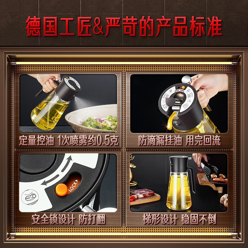 商品名称:德国三四钢喷油壶玻璃厨房家用空气炸锅油瓶雾化雾状喷壶食用油壶