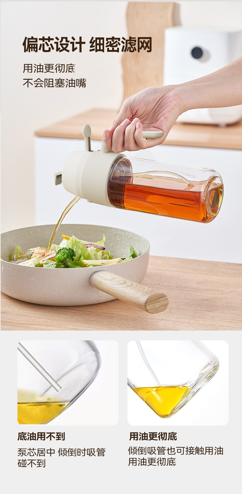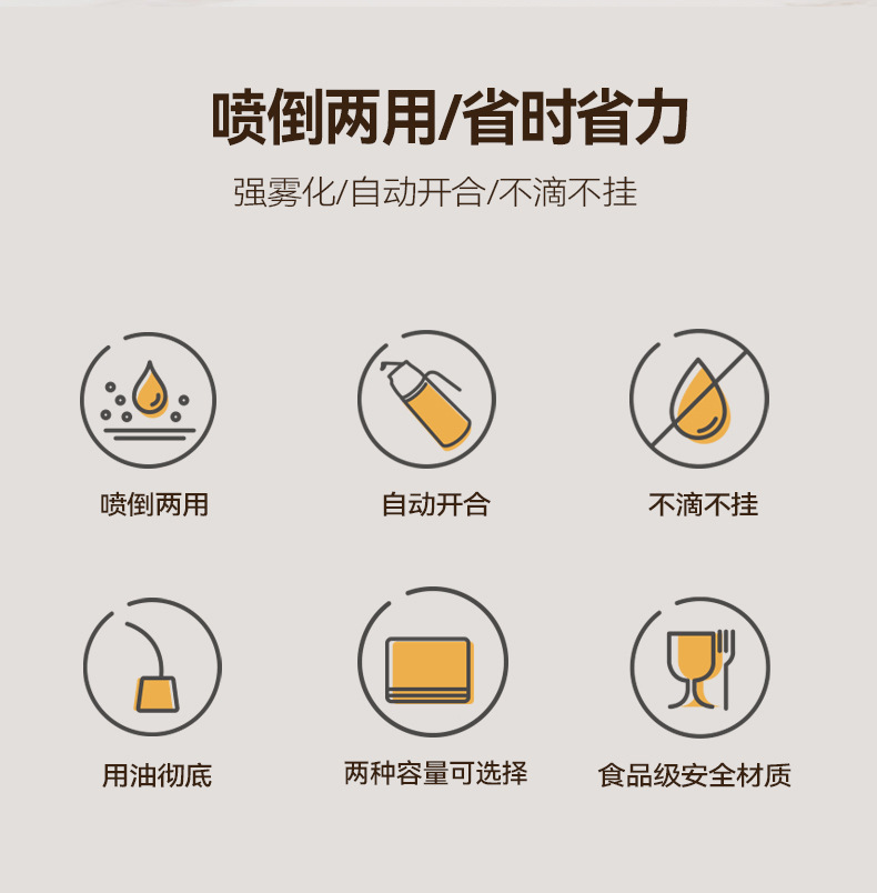 - 商品名称:厨房烧烤家用广角喷雾油壶喷倒两用自动开合一体不挂油玻璃调料瓶