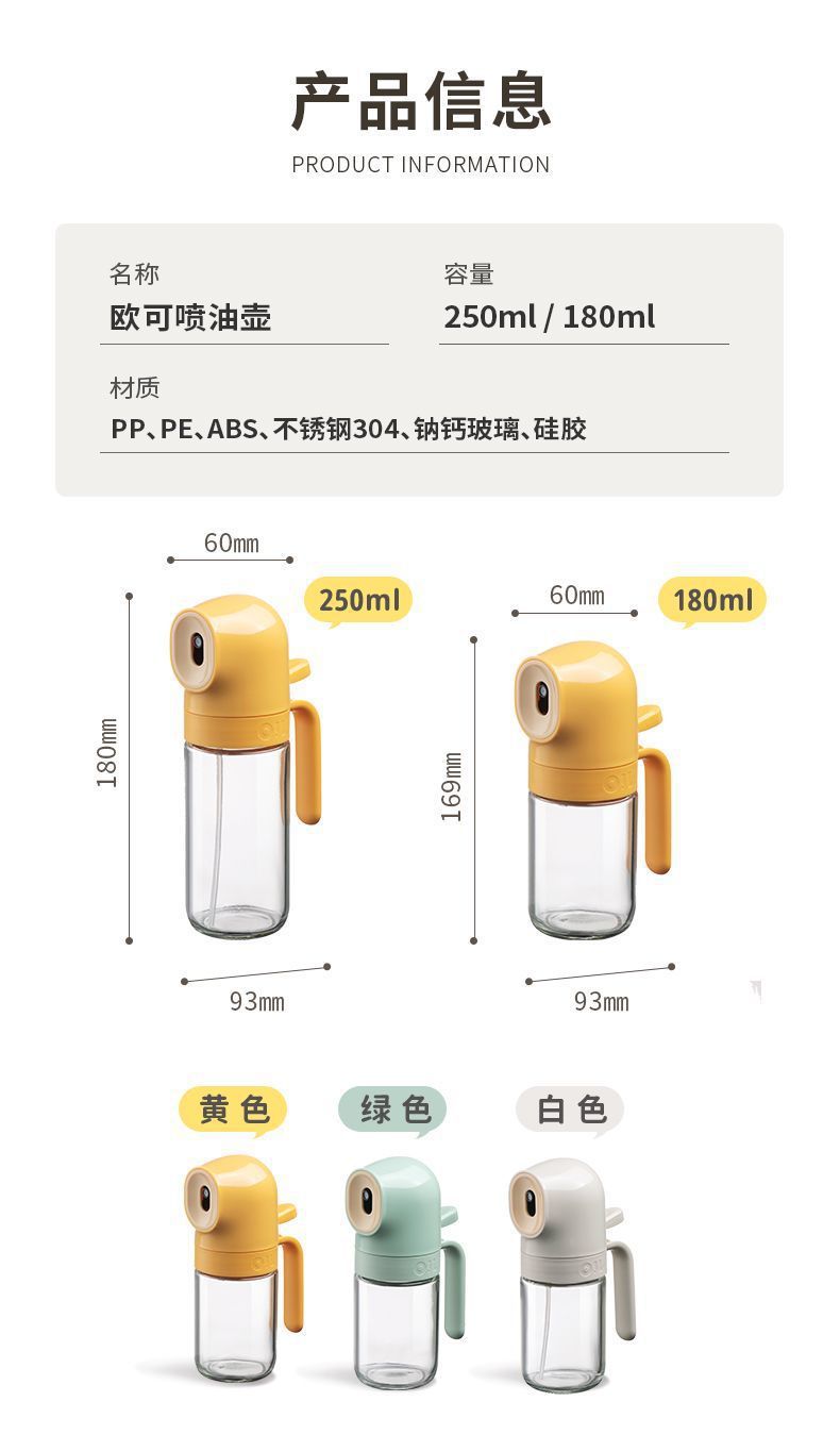 商品名称:玻璃喷油壶家用厨房小油壶喷雾化喷油瓶空气炸锅喷雾油瓶