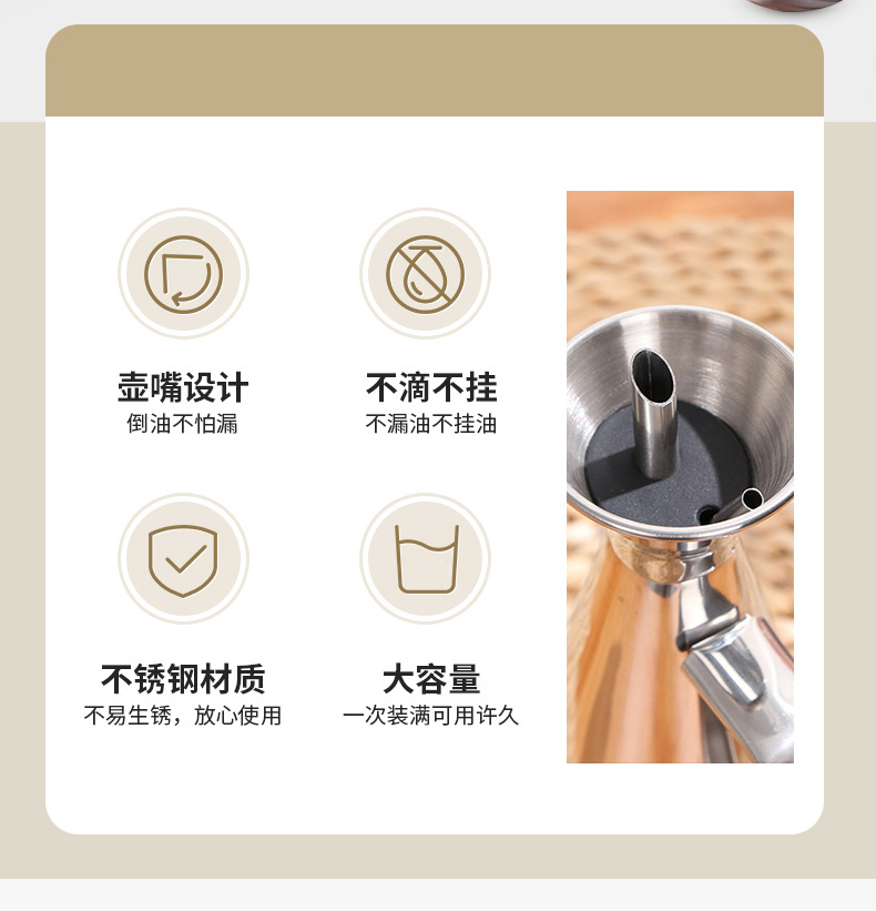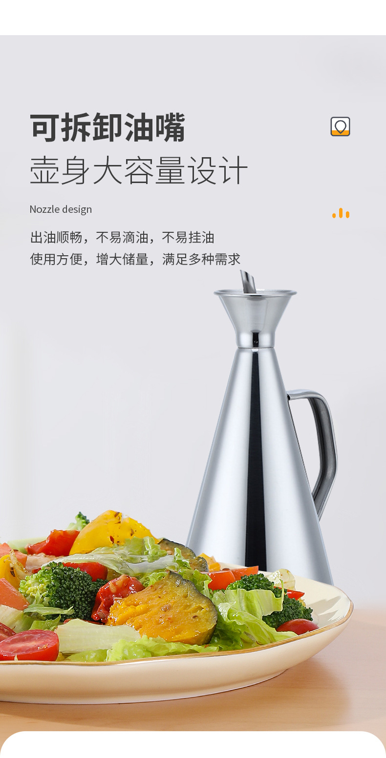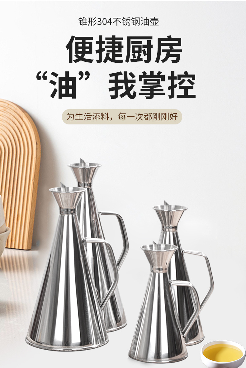 商品名称:油壶不挂油不锈钢锥形油壶大容量家用厨房用品油醋瓶防漏油壶
