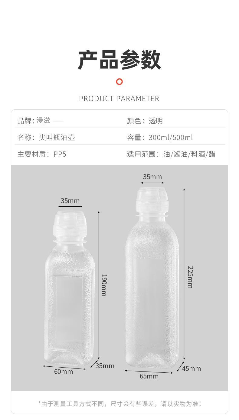 商品名称:厨房控油尖叫油壶尖嘴厨房酱油醋调味瓶食品级多用挤压控油出油瓶