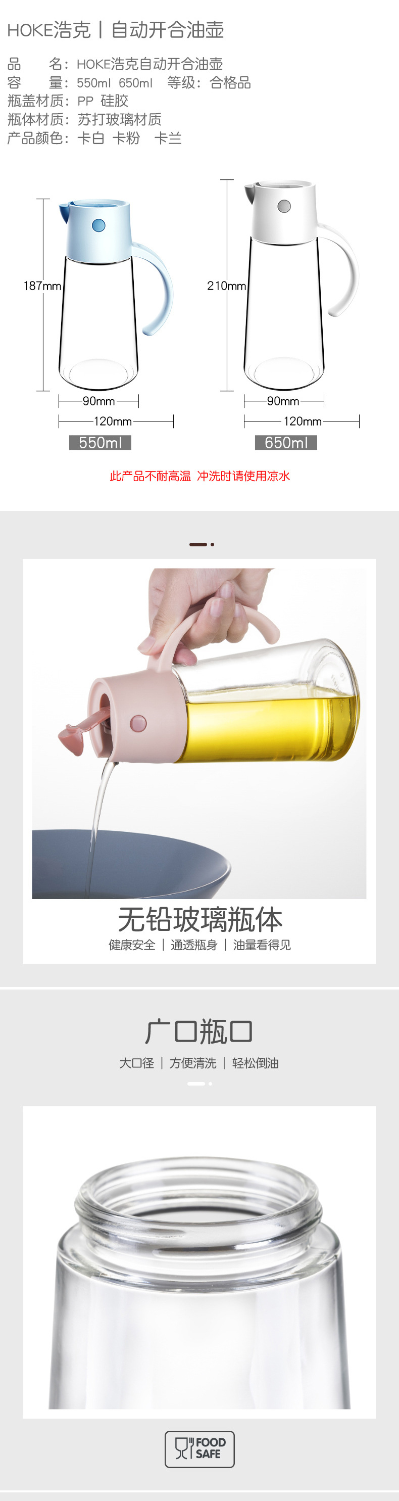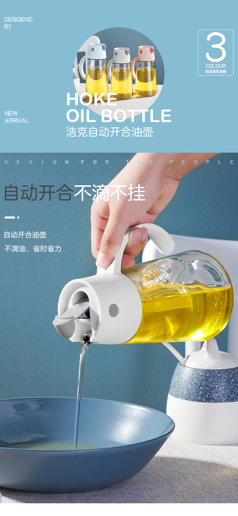 商品名称:浩克自动开合玻璃油壶厨房防漏油罐带盖调味料瓶醋瓶油瓶厂家直销
