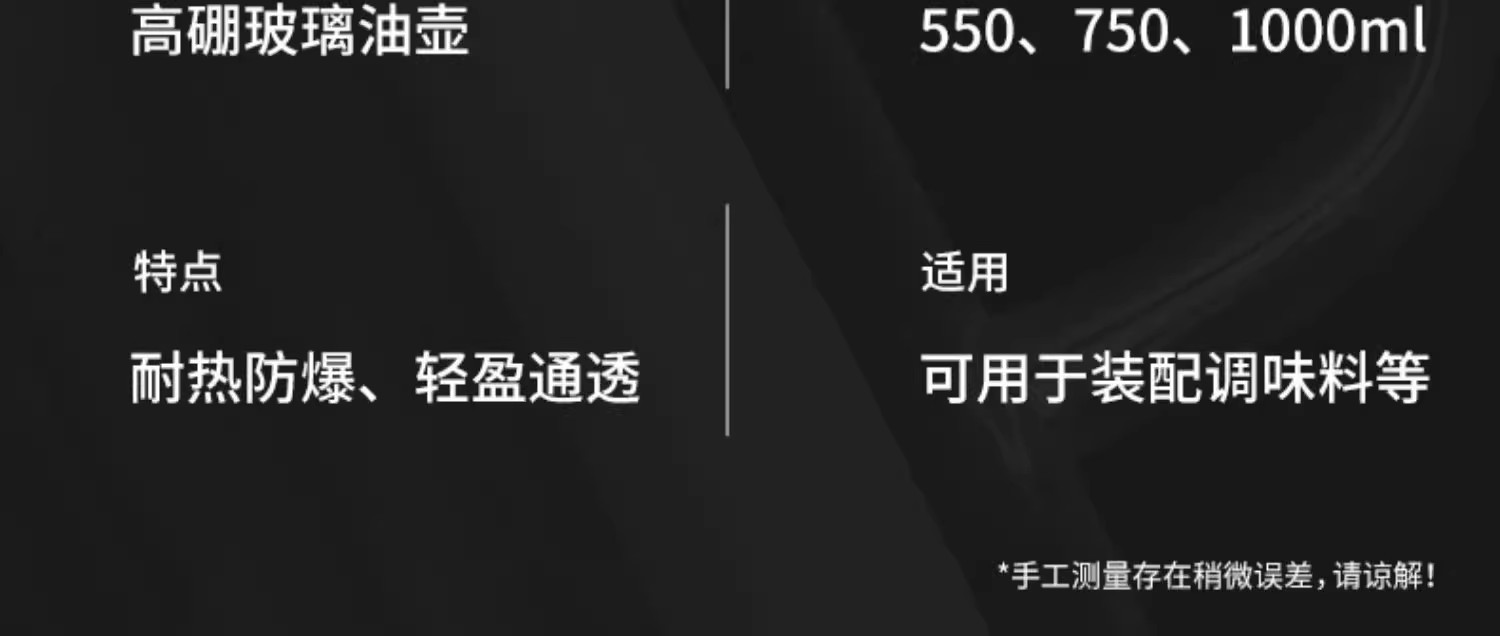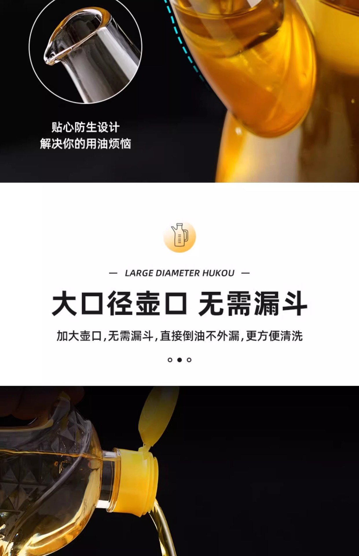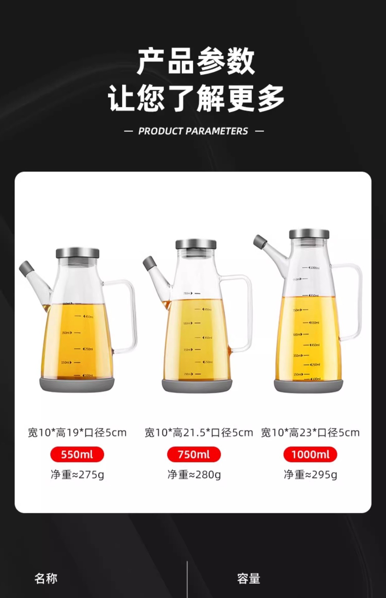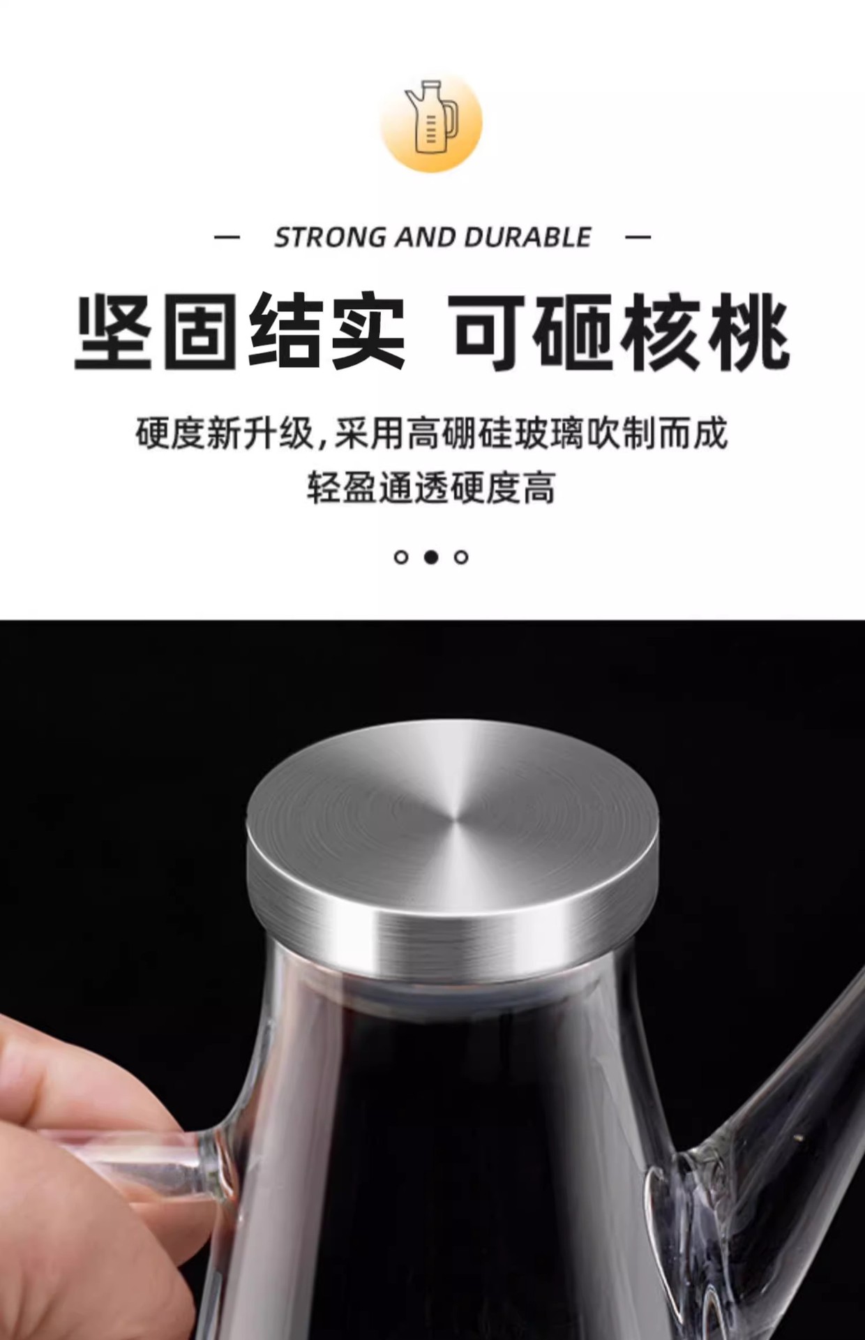 商品名称:玻璃油壶厨房家用不挂油调味料装酱油小醋瓶防漏油不锈钢大号油罐
