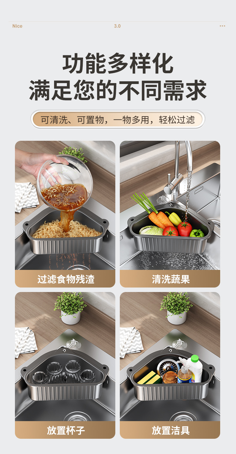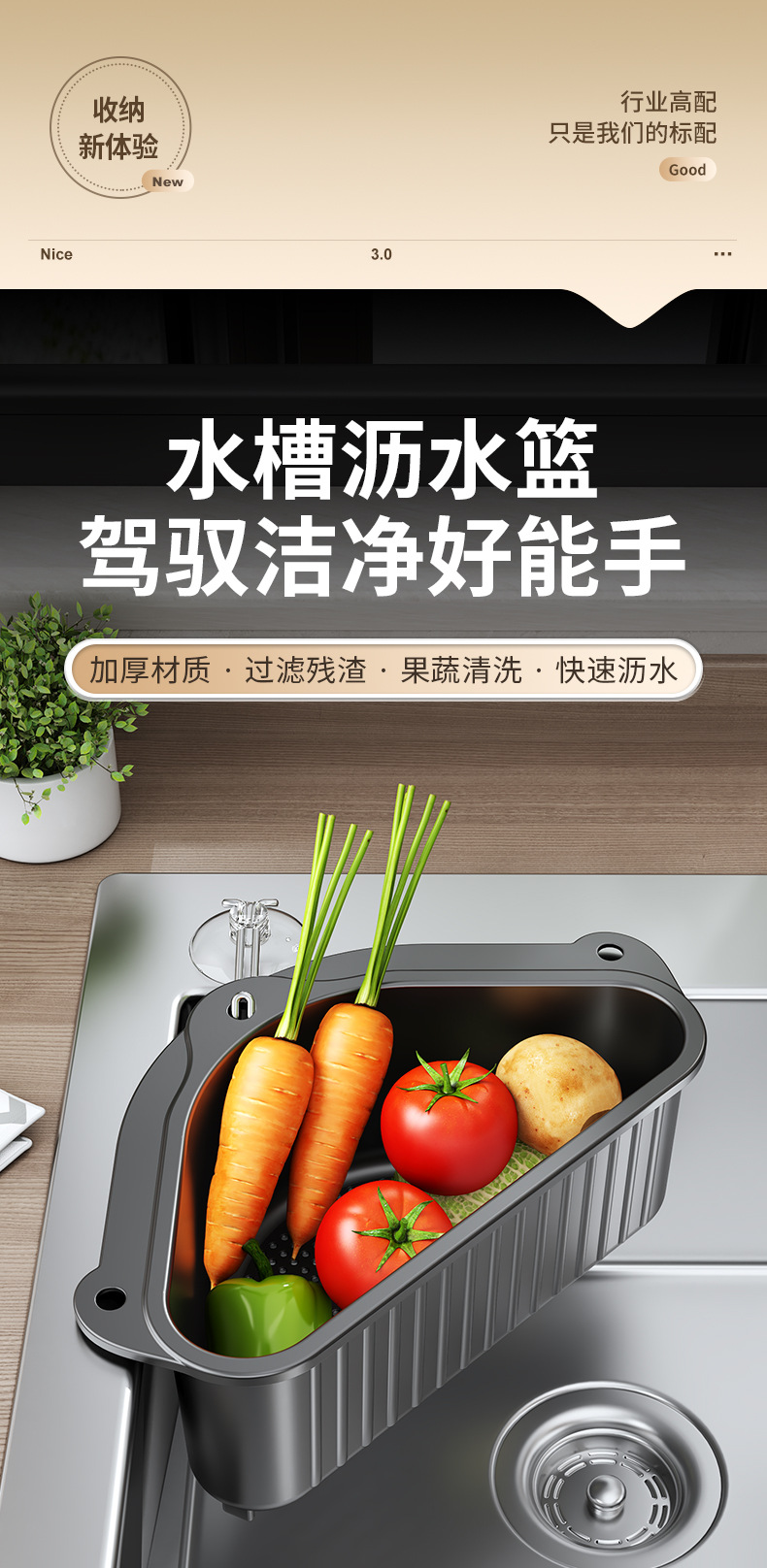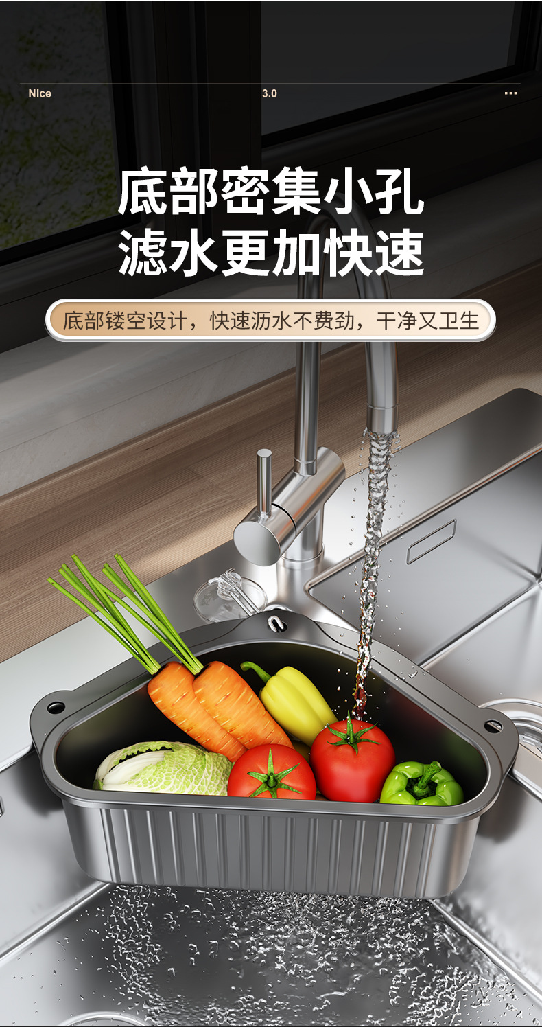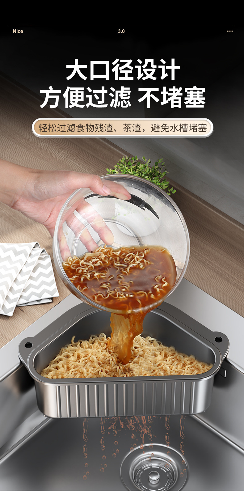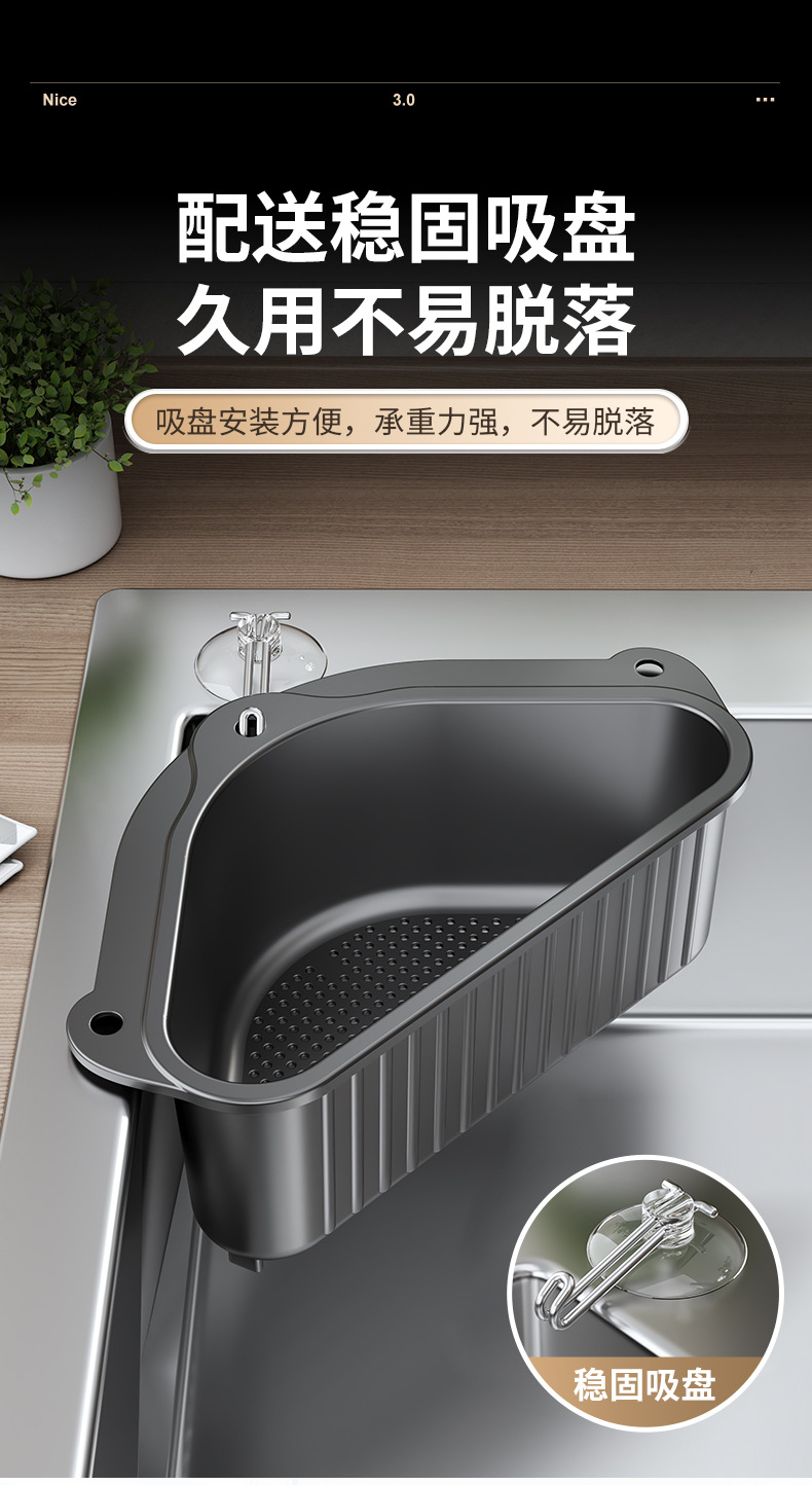 商品名称:免打孔水槽沥水篮厨房剩饭剩菜过滤神器三角洗碗池网沥水架置物架