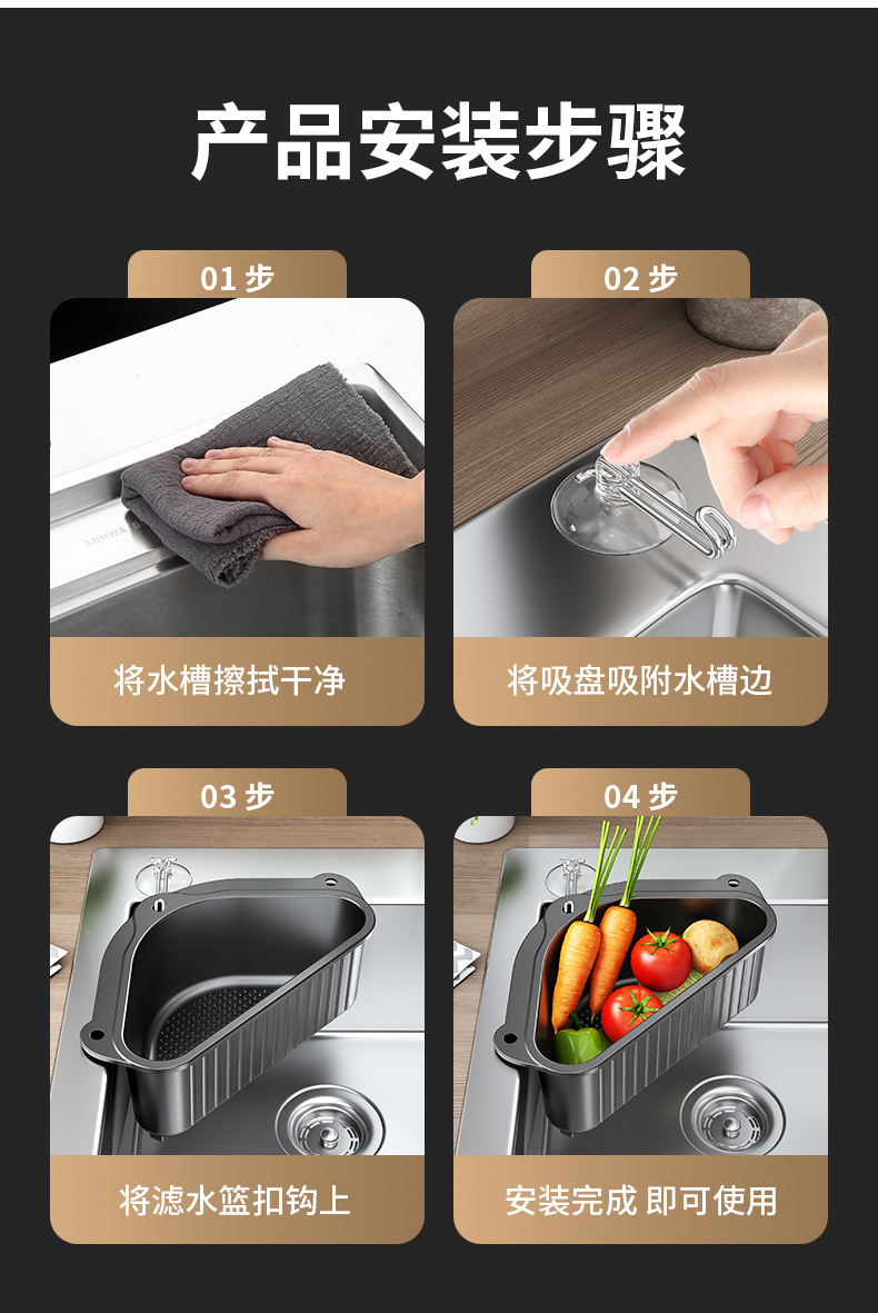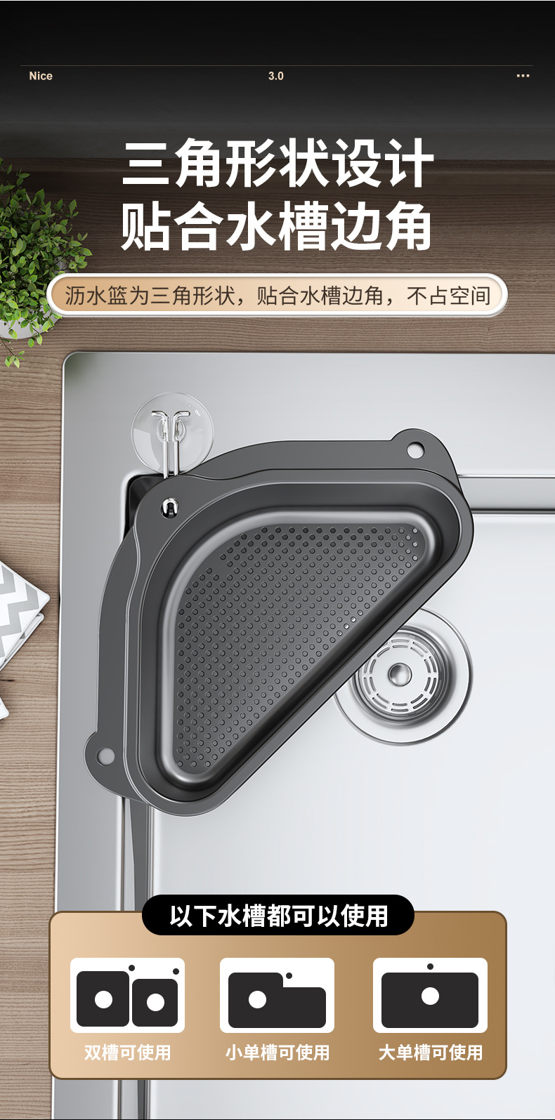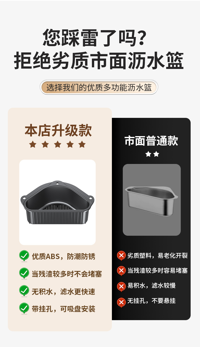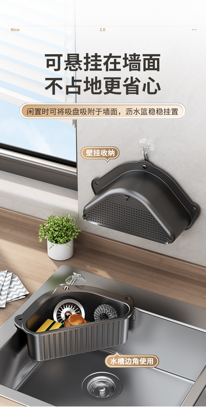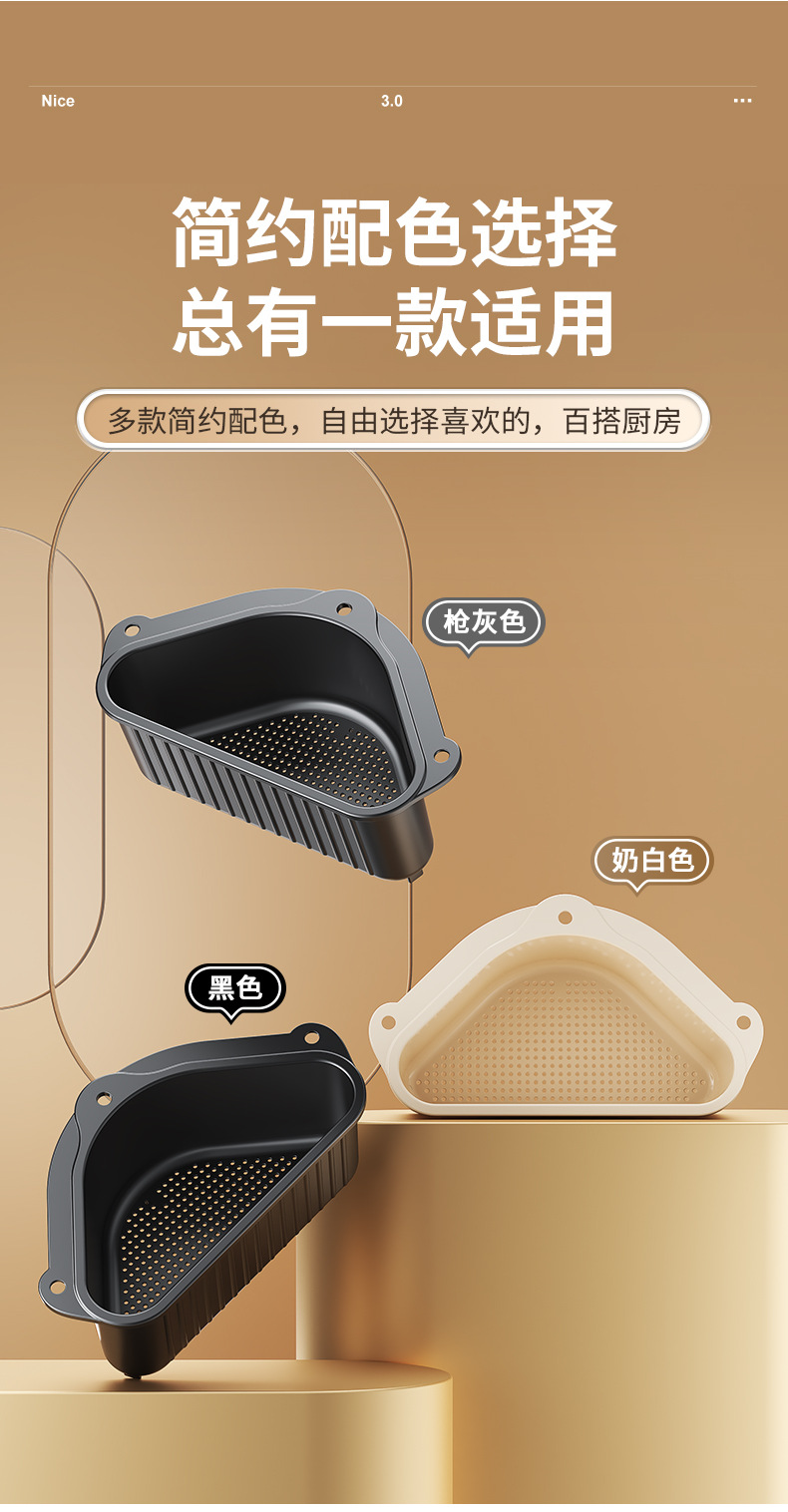 商品名称:免打孔水槽沥水篮厨房剩饭剩菜过滤神器三角洗碗池网沥水架置物架