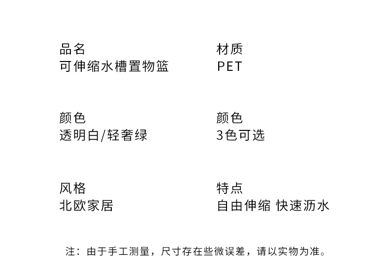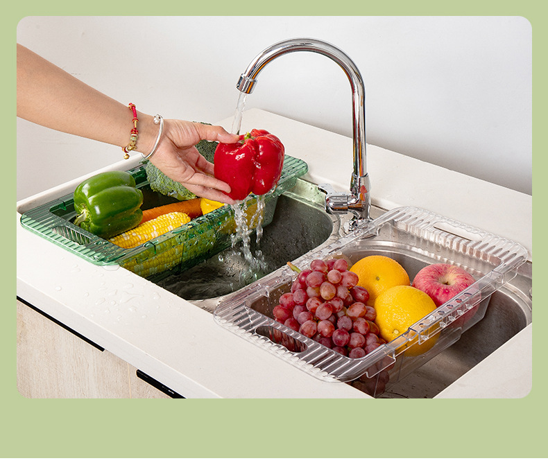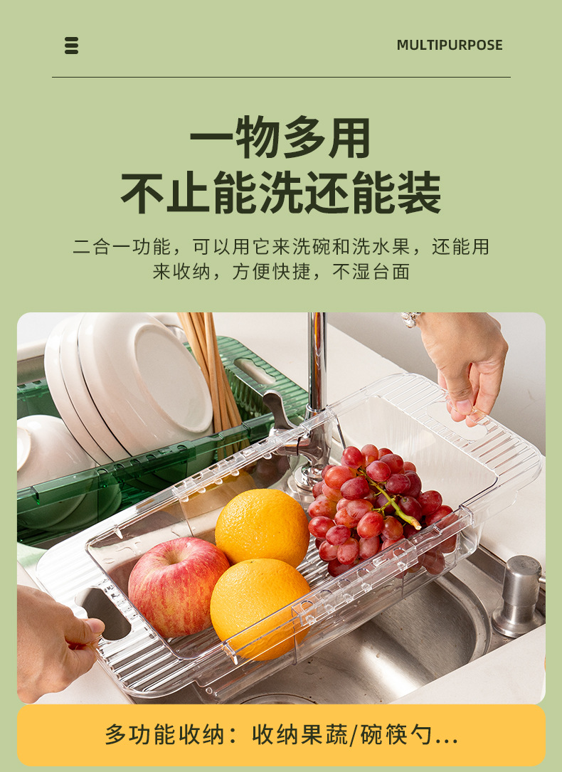 商品名称:沥水篮可调节伸缩洗水果菜沥水篮子塑料水槽家用厨房收纳置物架