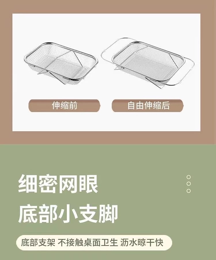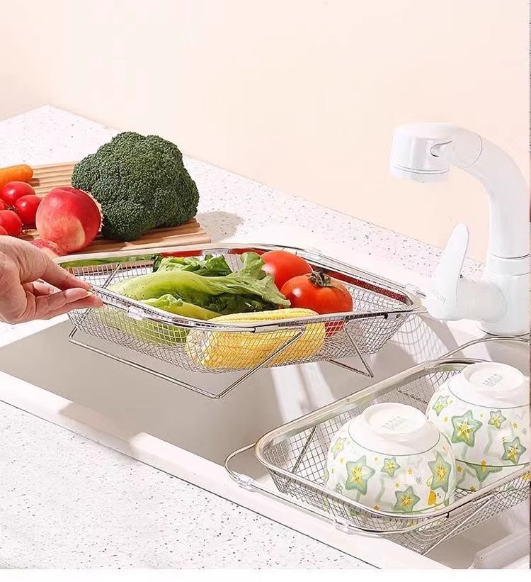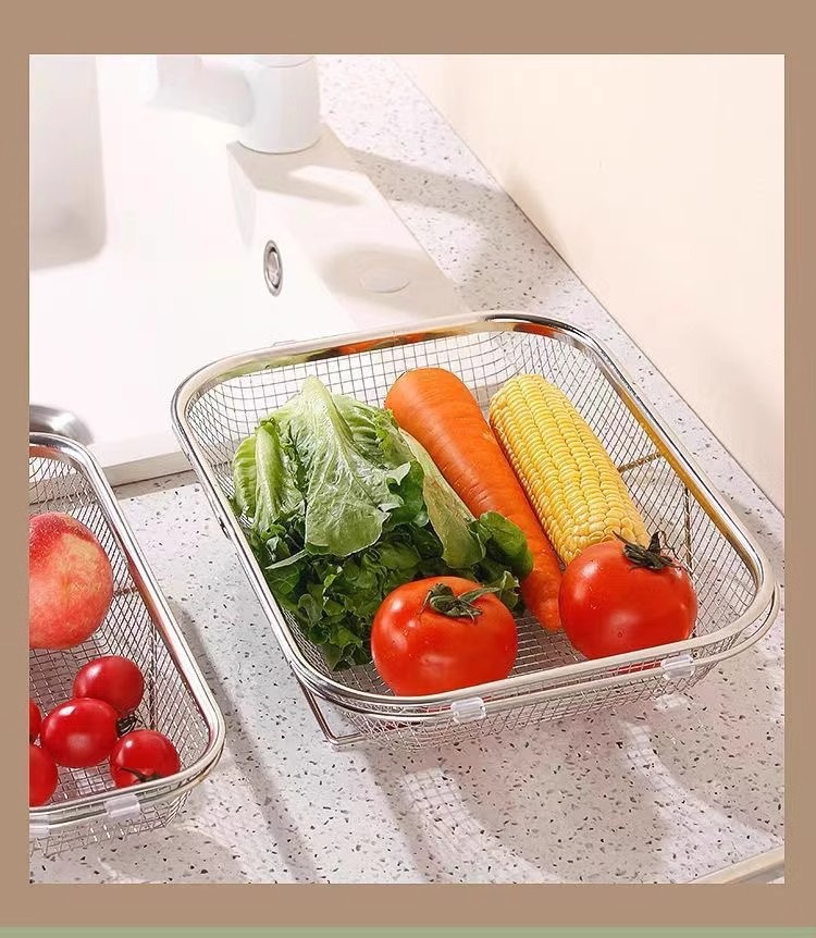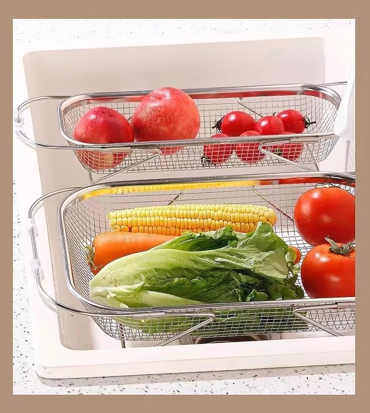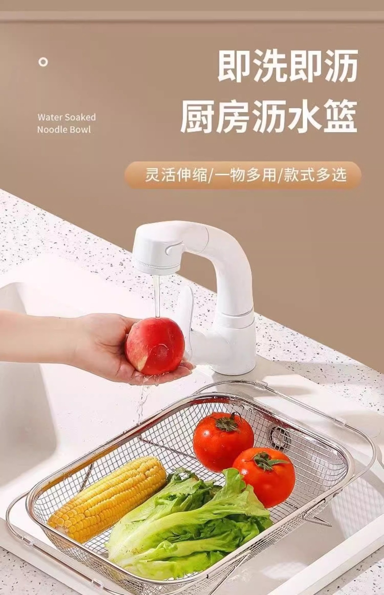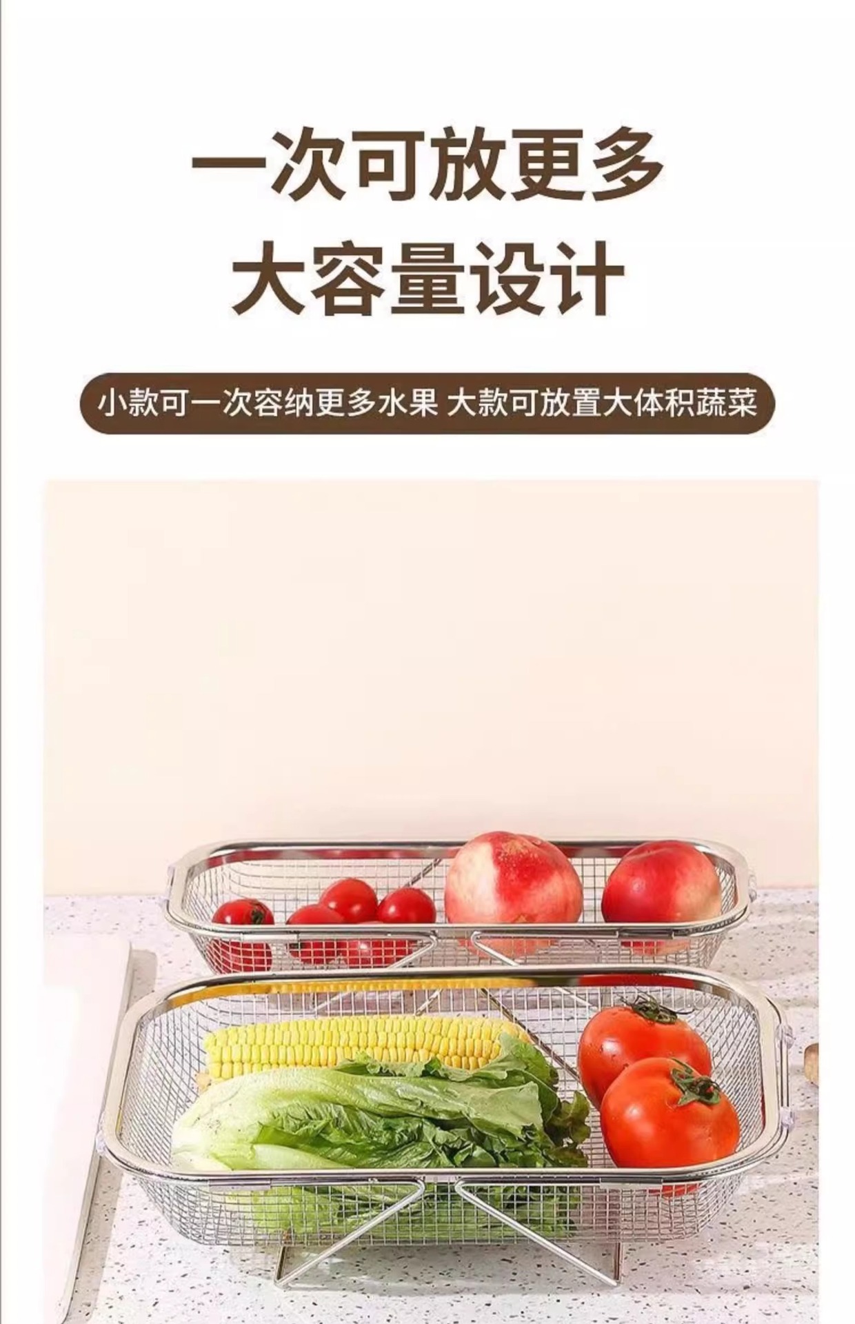中号可伸缩不锈钢沥水篮【防腐防锈】