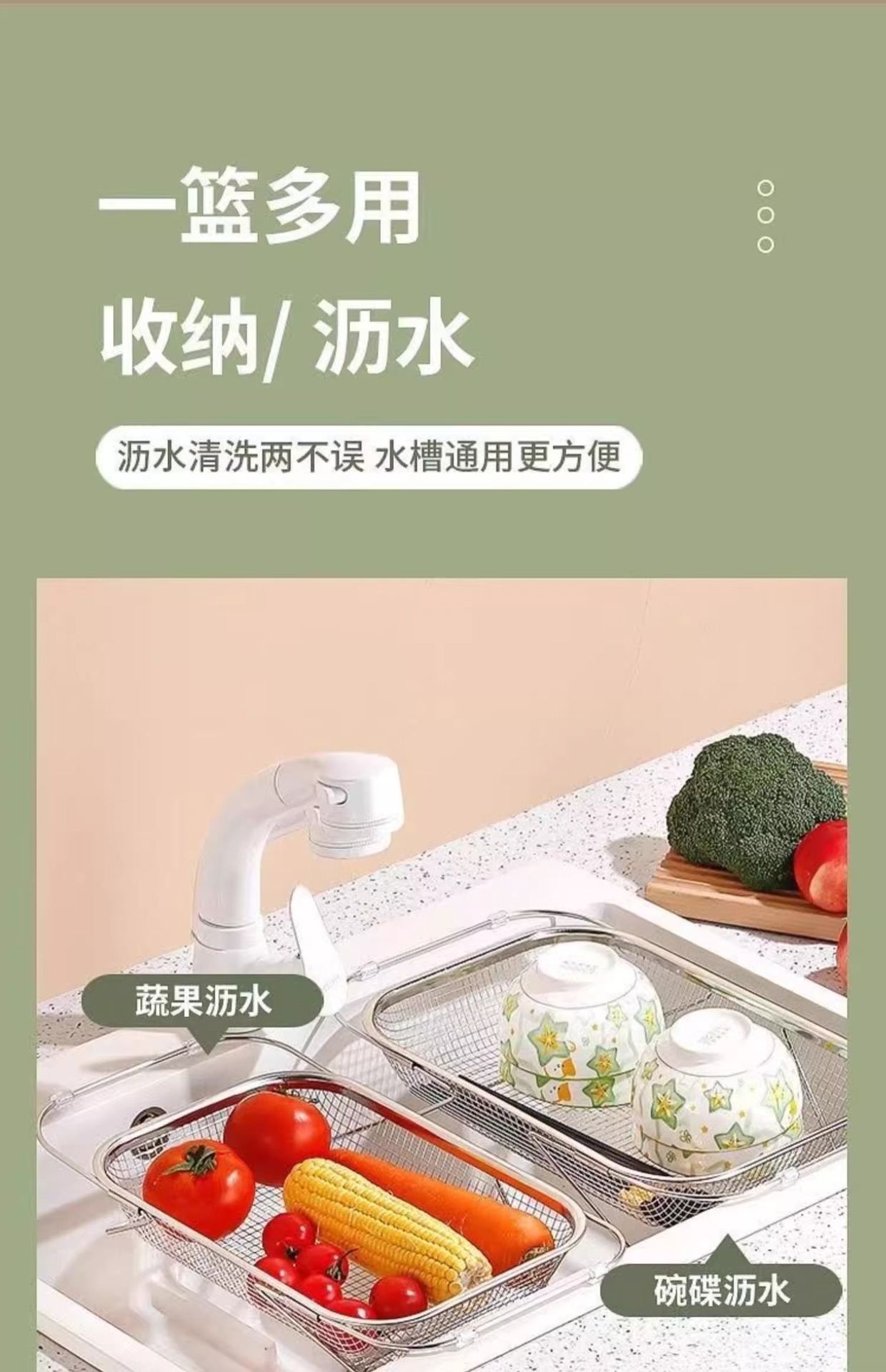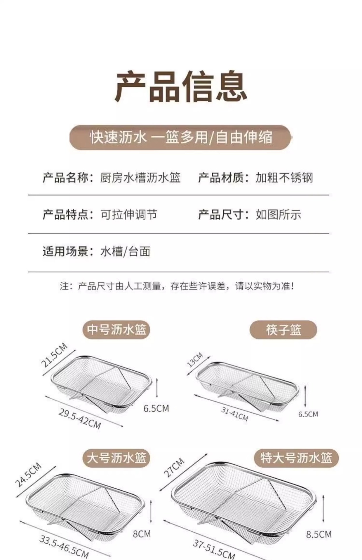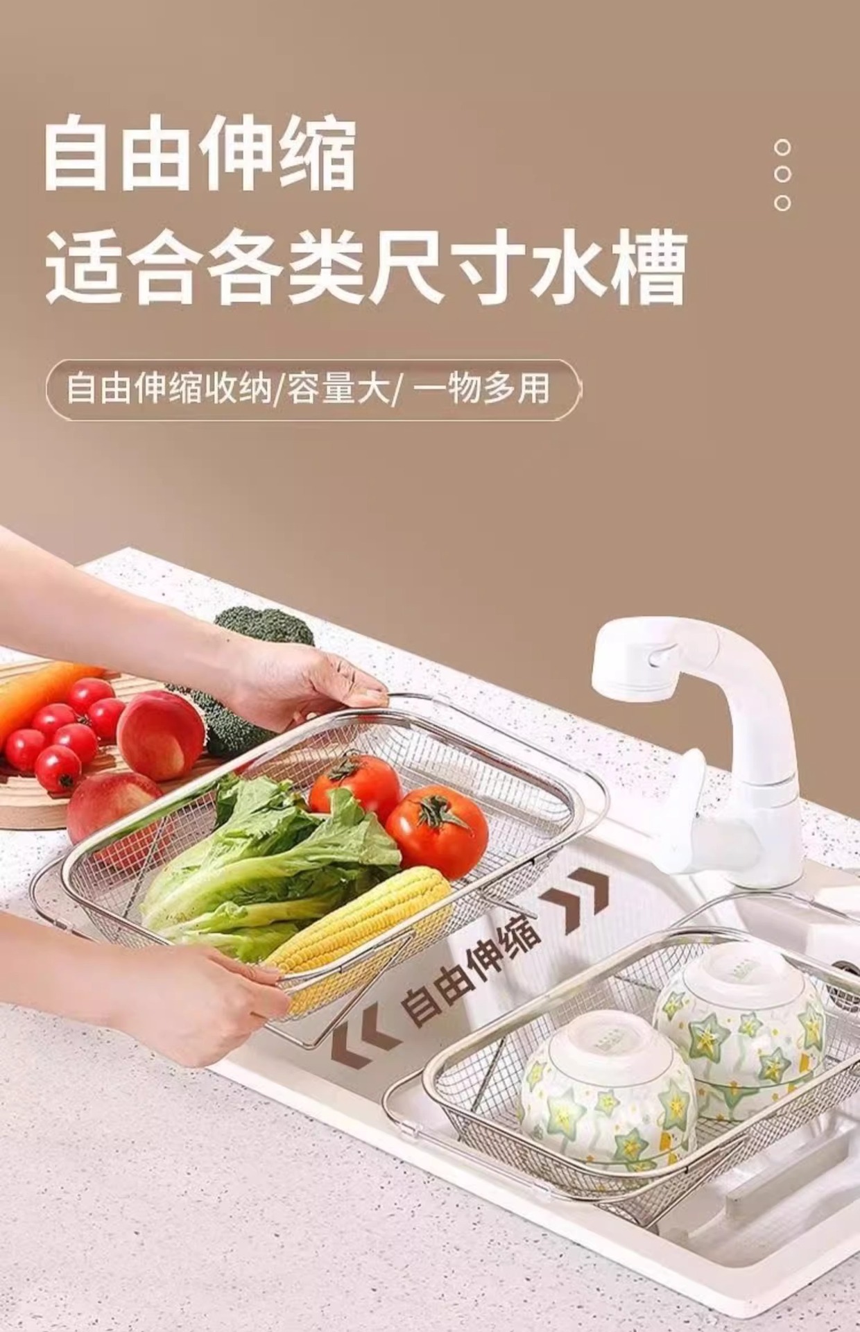 商品名称:可伸缩沥水篮不锈钢洗菜盆置物架厨房洗碗碟槽沥水架水槽滤水神器