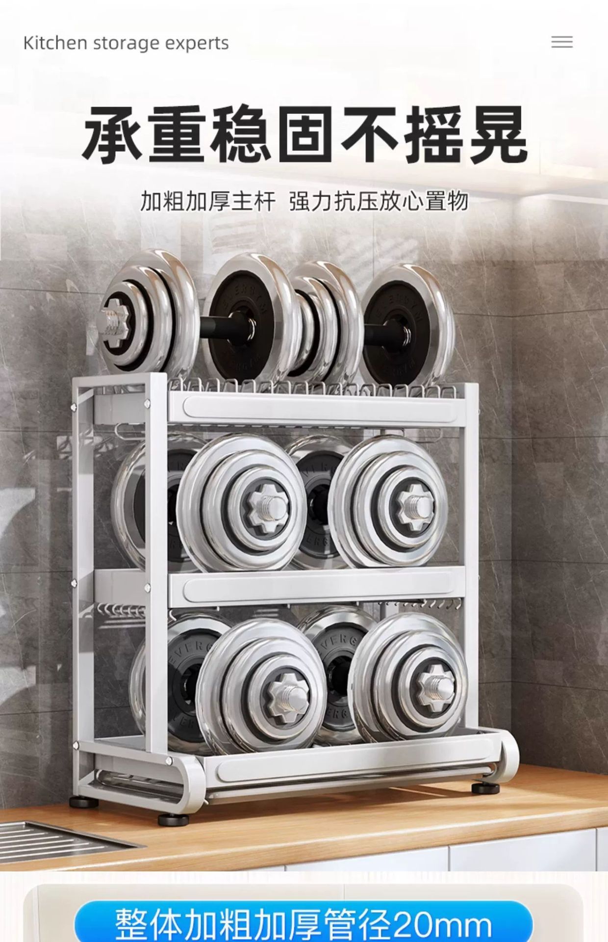 3层碗碟架【枪灰不锈钢-55长标配-4钩】