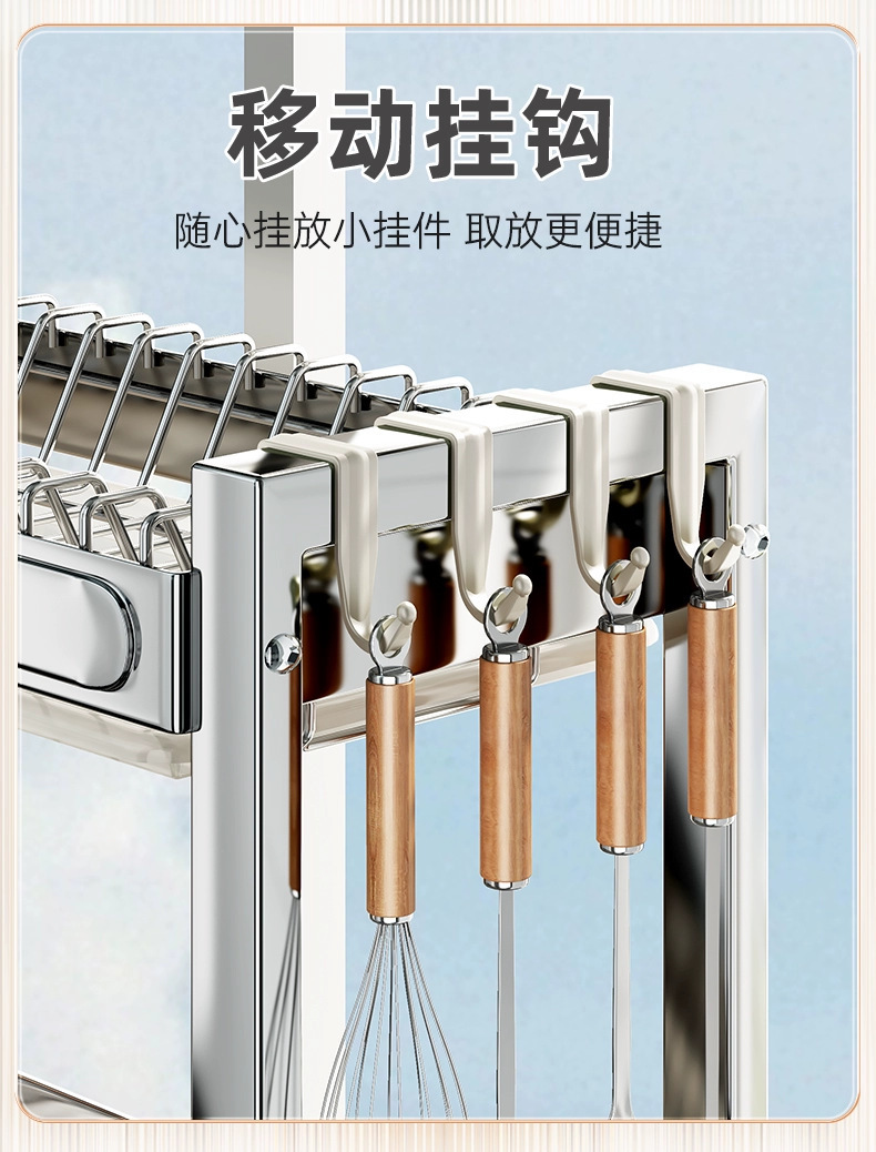 2层碗碟架【不锈钢-43长全配-4钩+刀筷架+砧板架】
