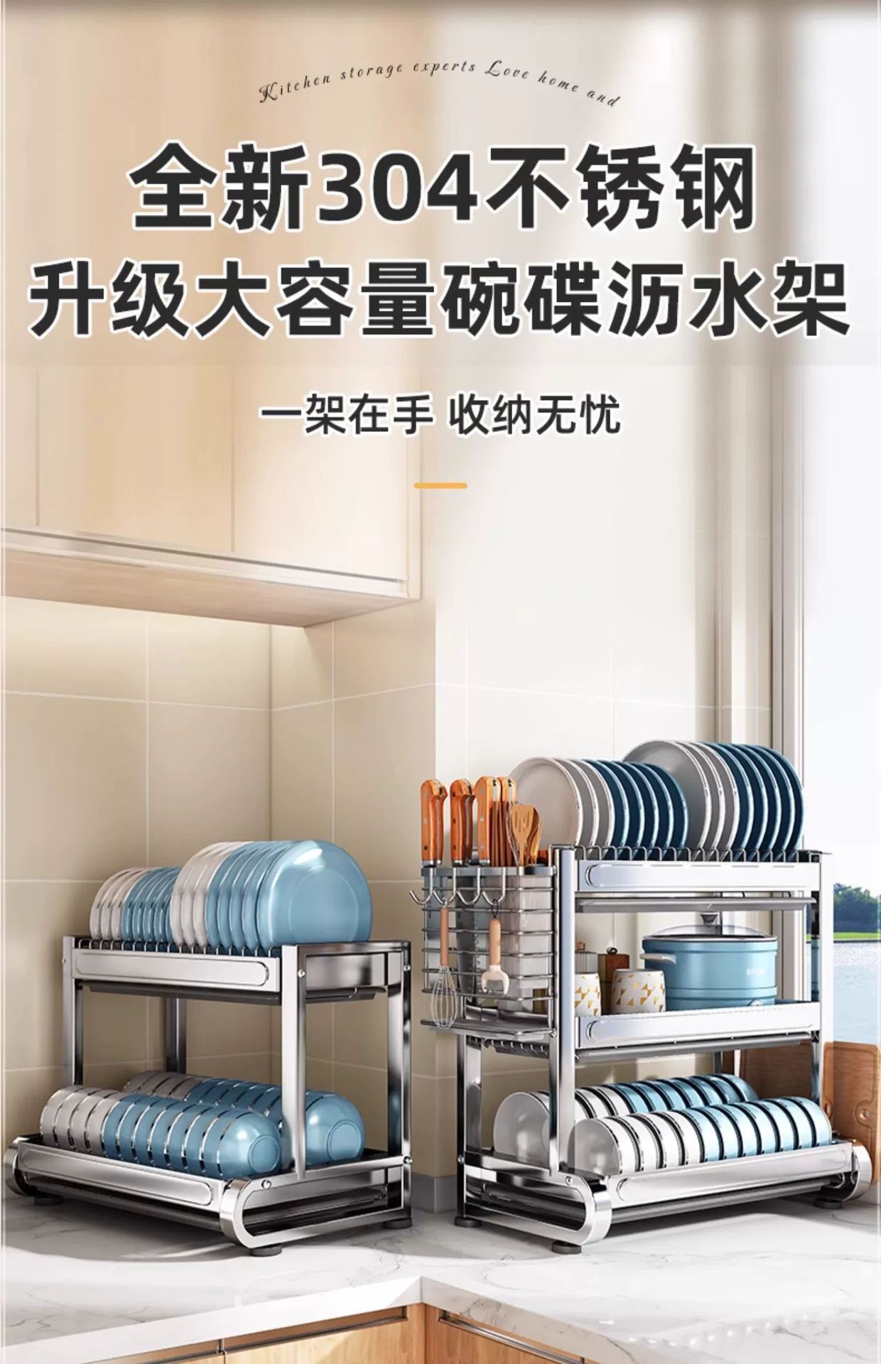 厨房不锈钢碗碟架多层厨房收纳架台面沥水碗架家用碗碟收纳