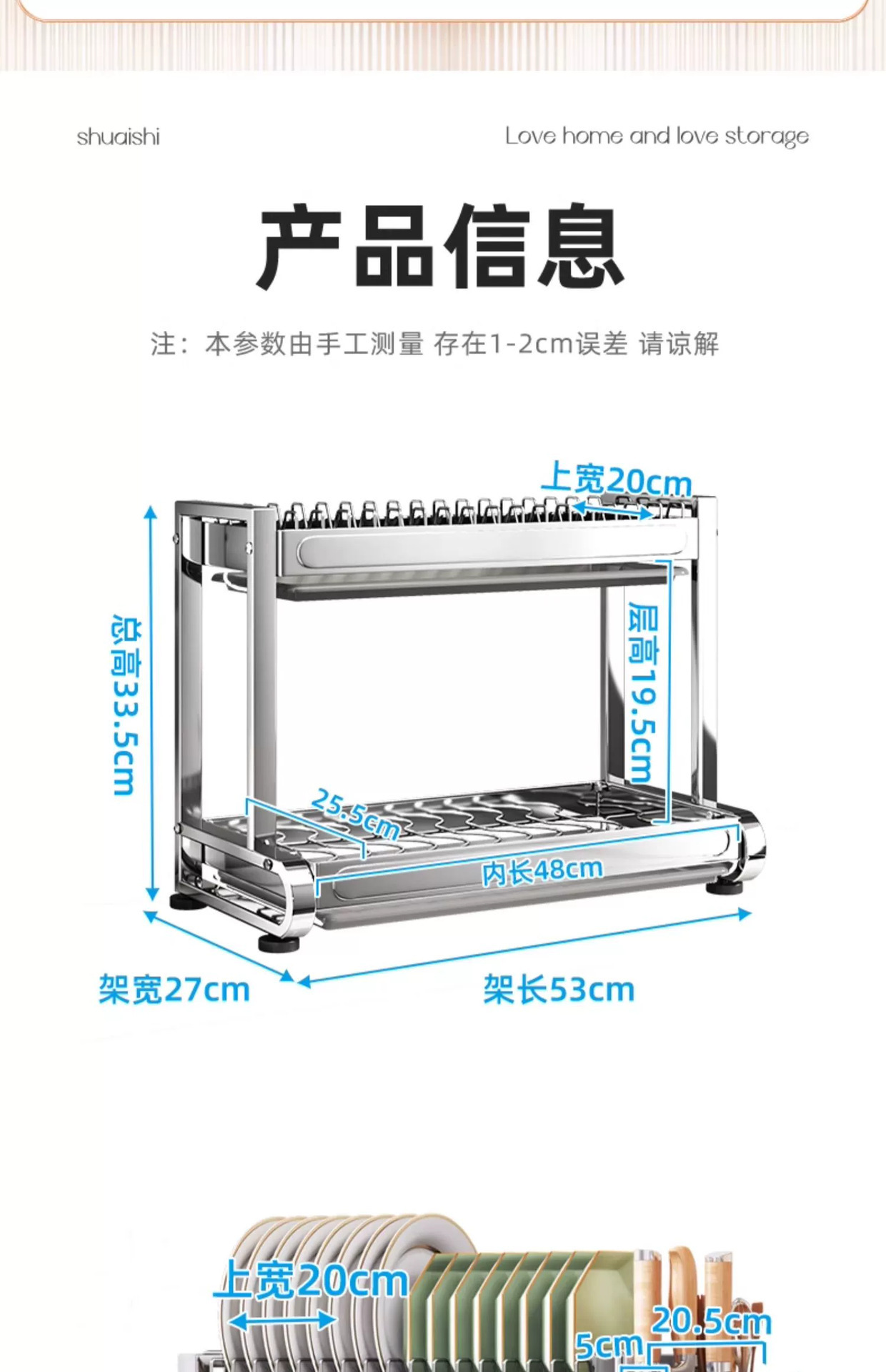 2层碗碟架【304不锈钢-55长标配-4钩】