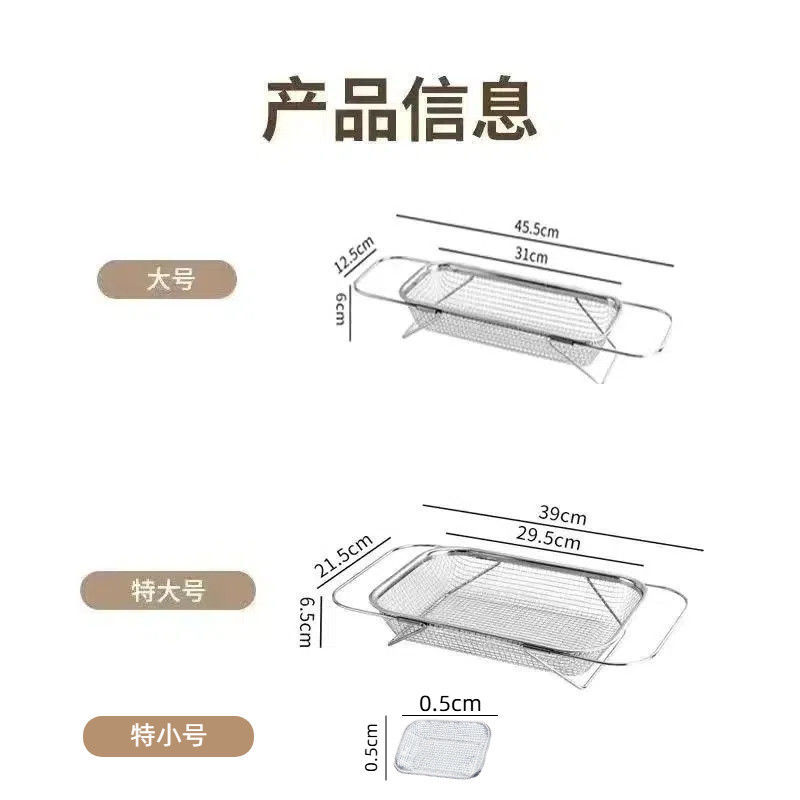 不锈钢沥水篮可伸缩洗碗池水槽置物架厨房洗菜篮水果水池碗碟收纳
