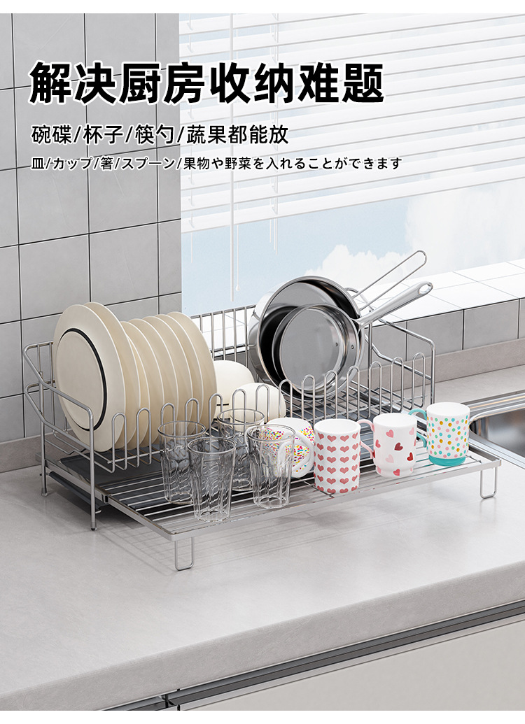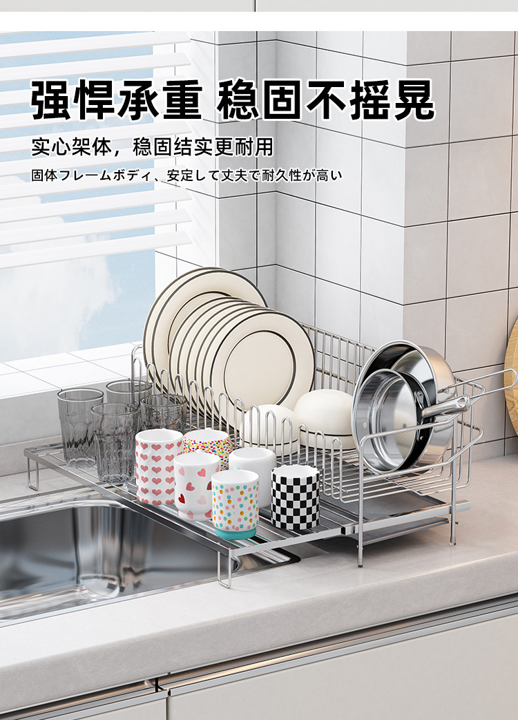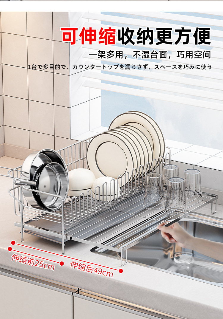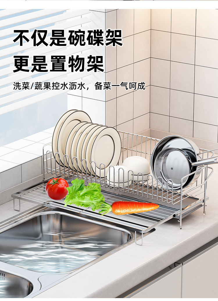 商品名称:可伸缩304不锈钢碗碟沥水架免安装厨房碗筷盘子收纳架台面沥水篮