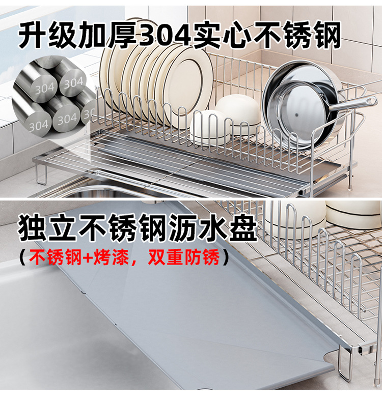 可伸缩304不锈钢碗碟沥水架免安装厨房碗筷盘子收纳架台面沥水篮