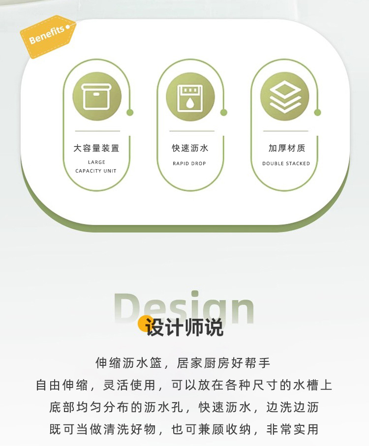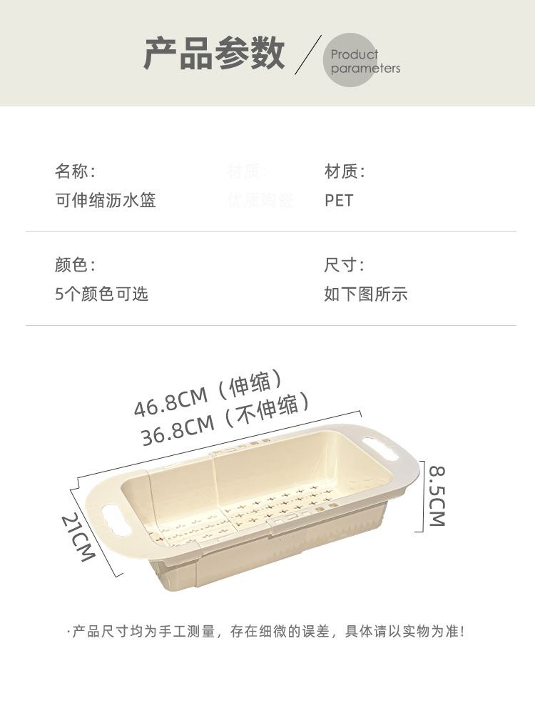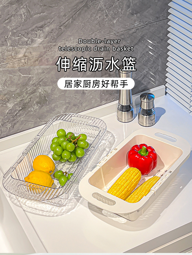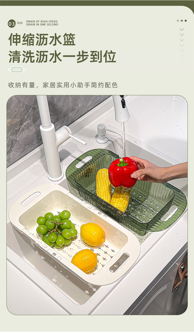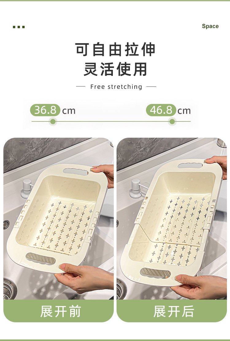 商品名称:25年新款家用厨房伸缩沥水篮大容量装置快速沥水自由拉伸沥水架