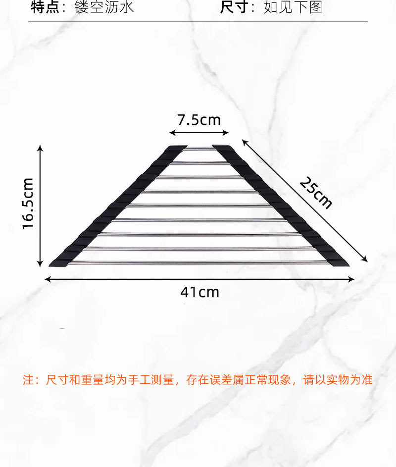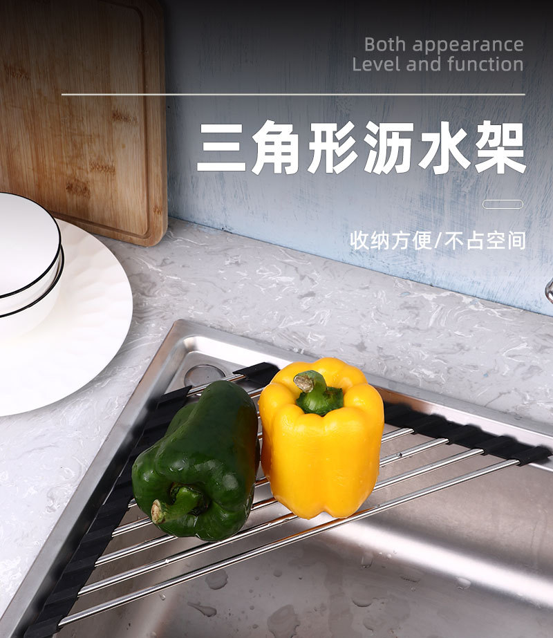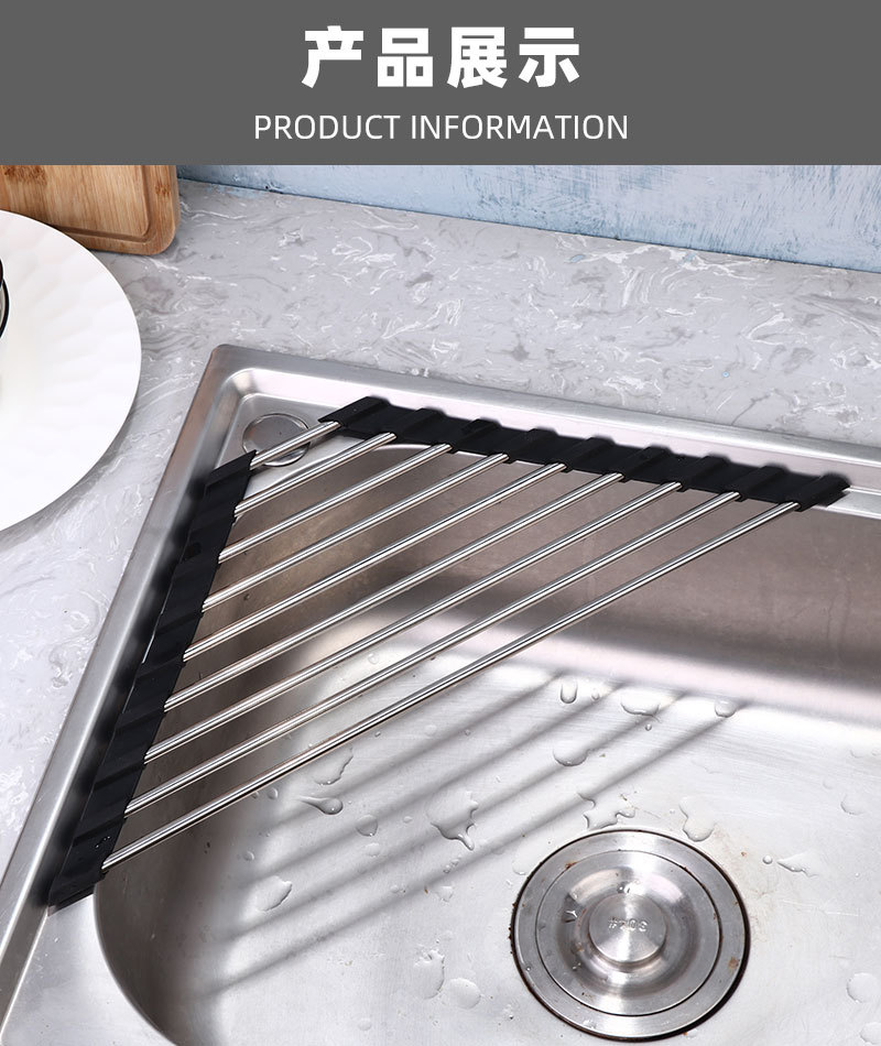 商品名称:不锈钢水池卷帘沥水架水槽三角折叠沥水碗架厨房收纳置物架