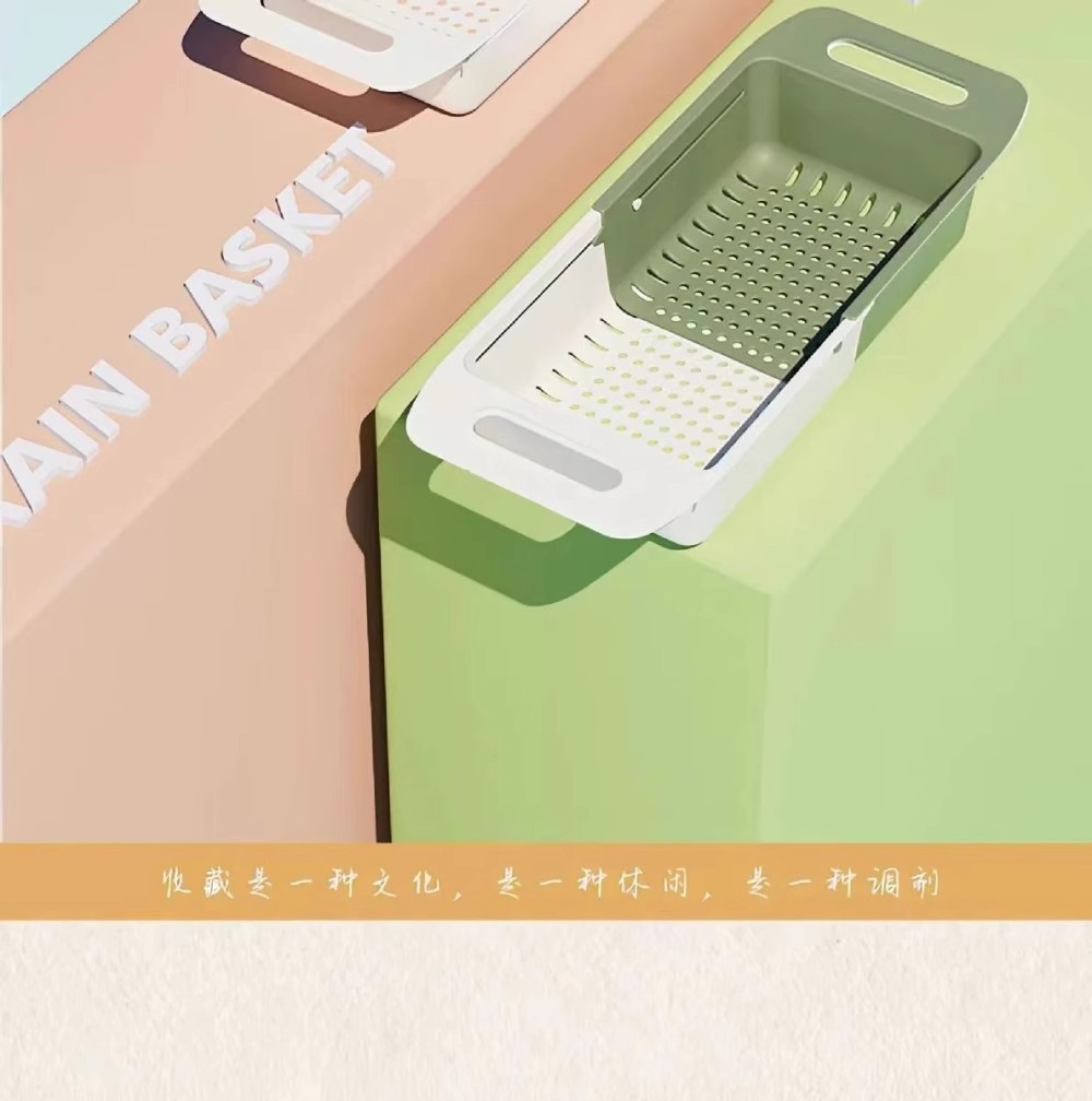 商品名称:厨房沥水篮家用伸缩洗菜篮水果蔬菜洗菜盆多功能免打孔水槽置物架