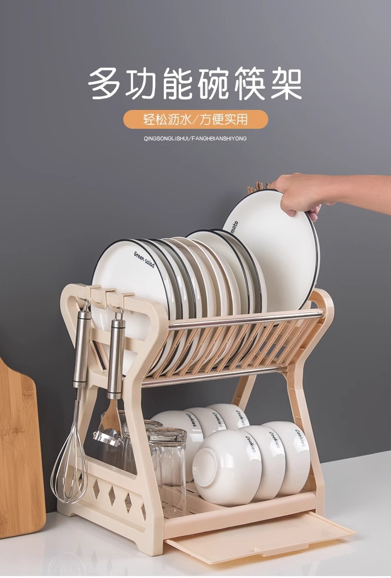 商品名称:厨房置物架落地多层收纳架新款家用沥水碗架塑料整理餐具架收纳盒