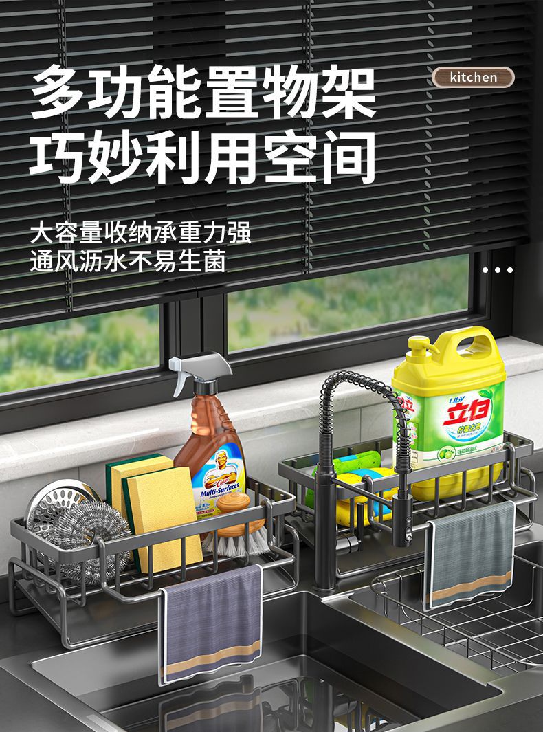 商品名称:厨房沥水架洁精海绵抹布置物架水池沥水神器钢丝球洗手池收纳架