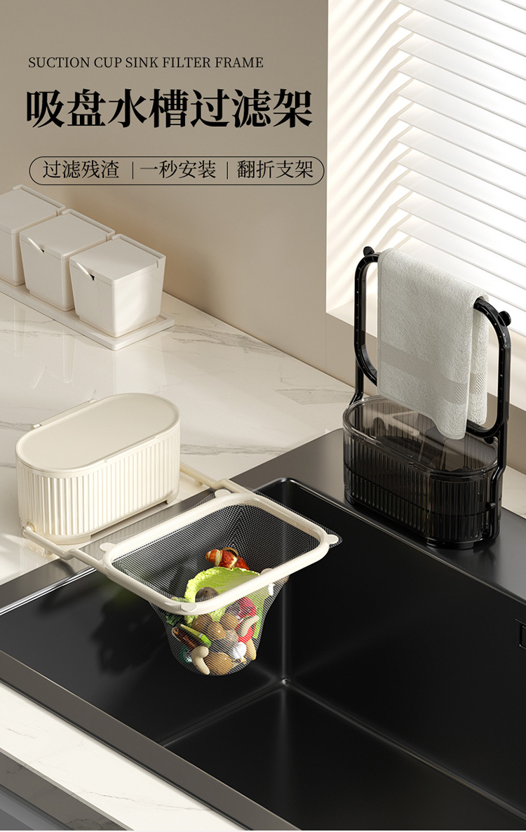 - 商品名称:新款二合一水槽沥水架水池残渣沥水篮储物盒厨房沥水架吸盘式沥水