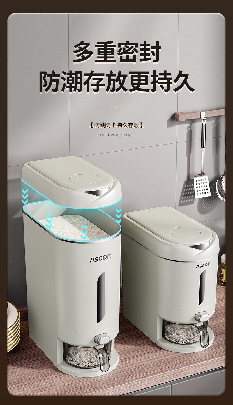 商品名称:米桶家用2024新款密封米缸米箱防虫防潮厨房装大米储存容器高端