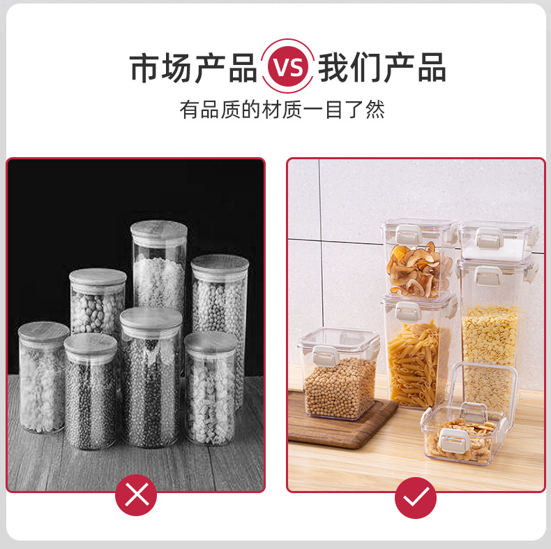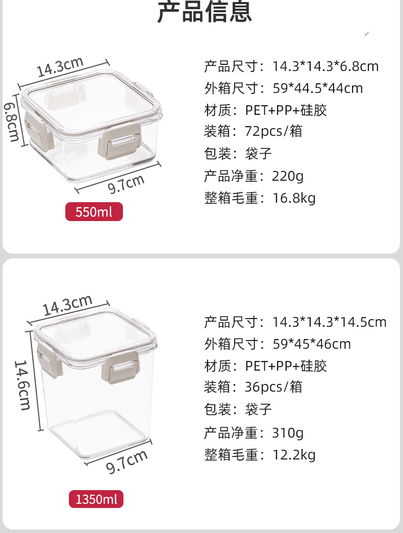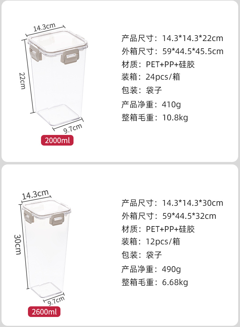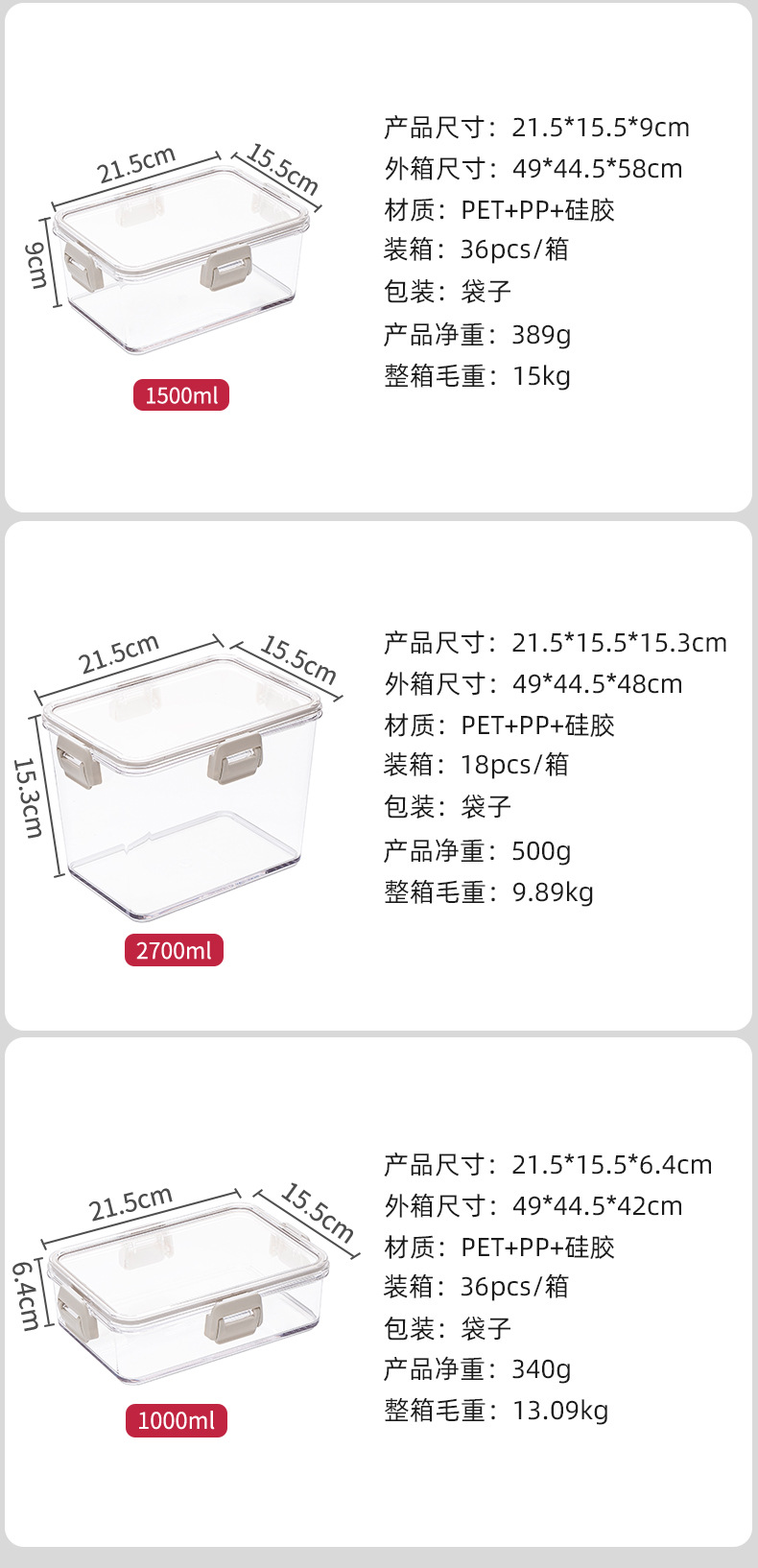 商品名称:厨房五谷杂粮收纳盒防虫防潮干货零食密封罐食品级冰箱食物保鲜盒