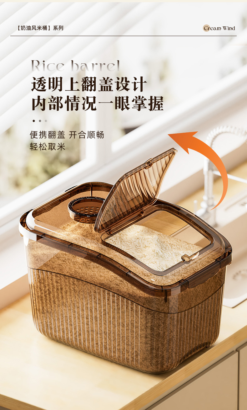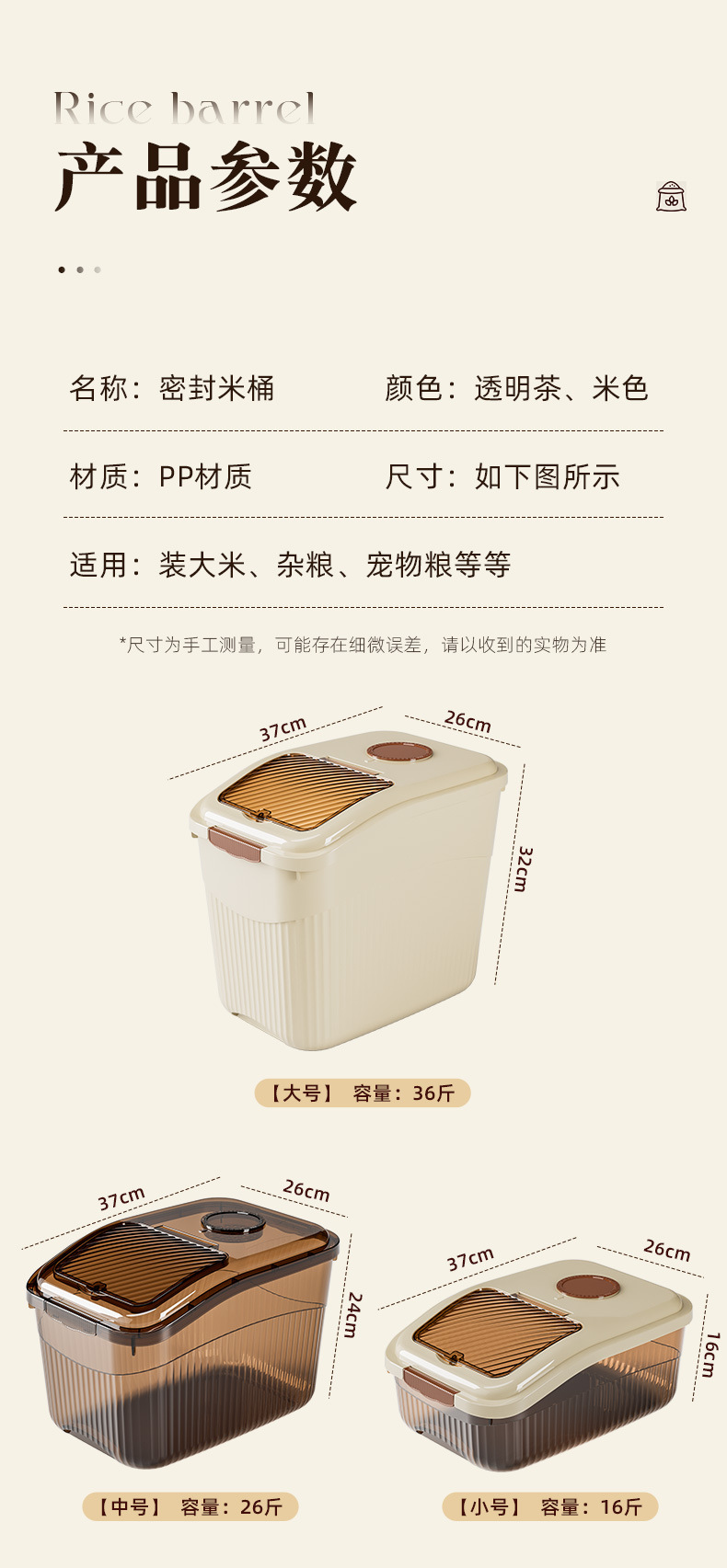 商品名称:米桶家用厨房防虫防潮带轮子密封食品级储米箱加厚大米面粉储存罐