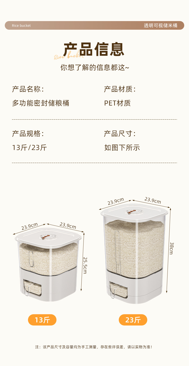 商品名称:家用米桶防虫防潮密封食品级装米箱面桶米面储存容器高端按压米缸