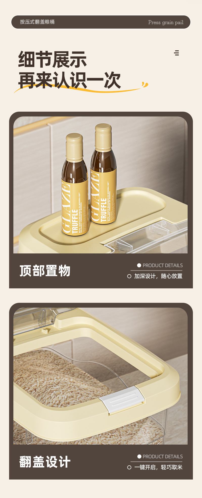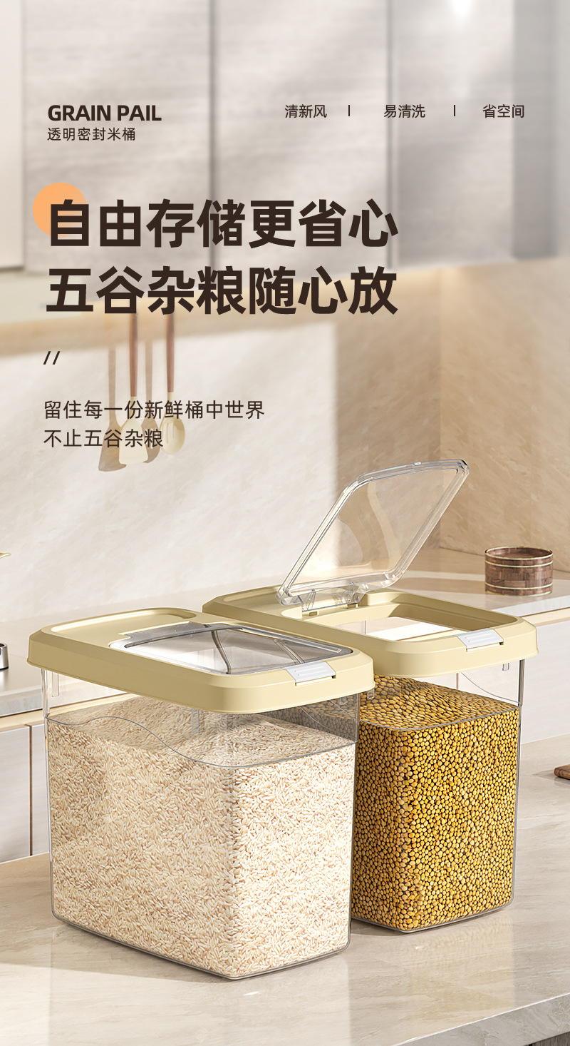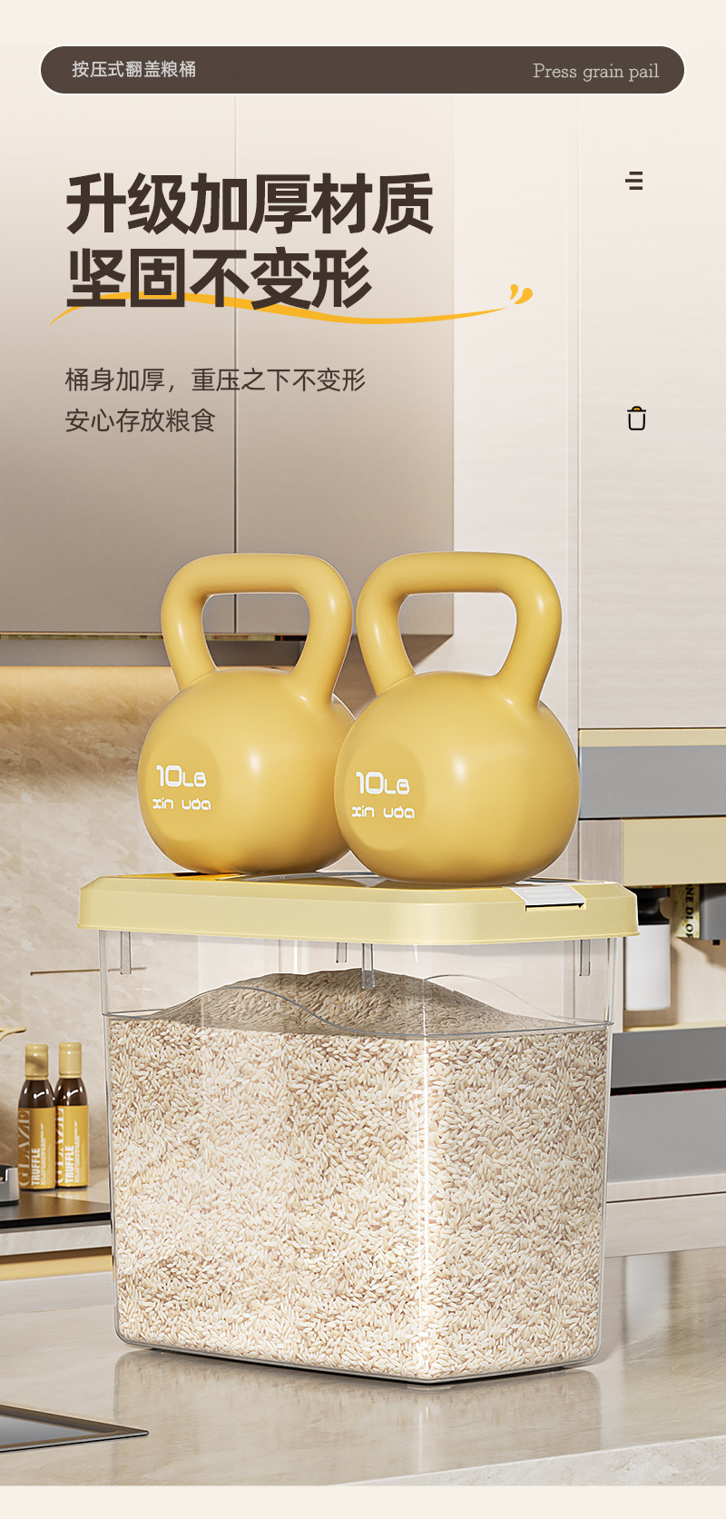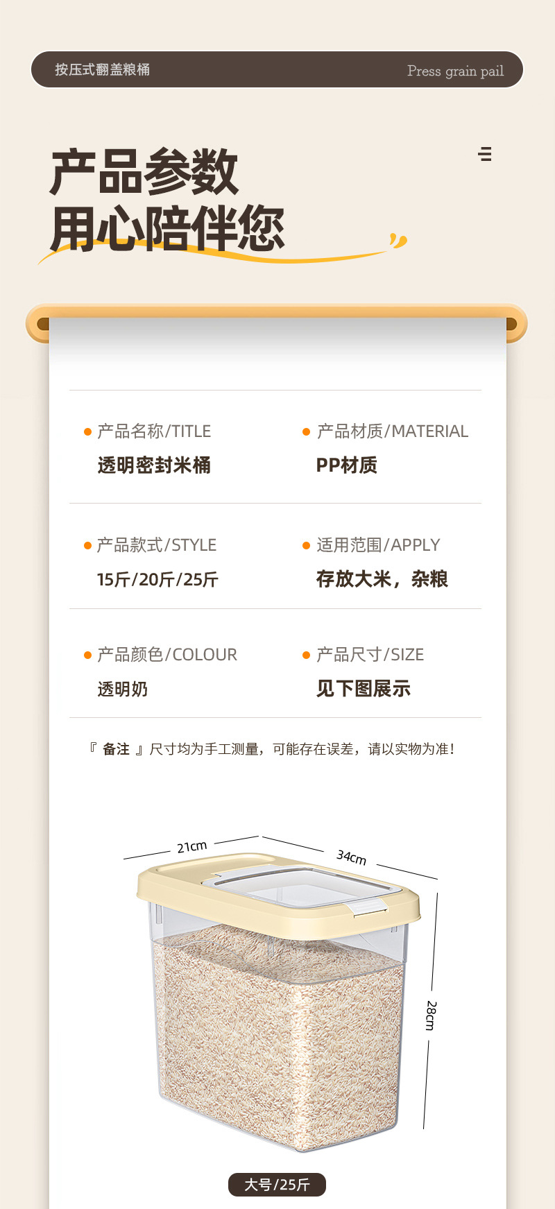 商品名称:米桶20斤食品级家用防虫防潮密封米缸面粉五谷杂粮储米桶按压米箱