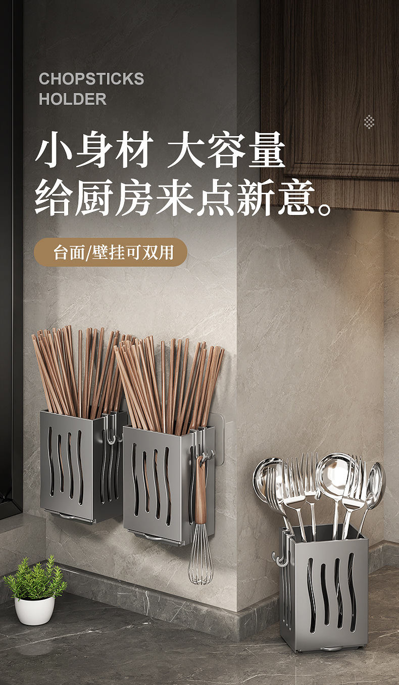 商品名称:源头工厂壁挂式多功能筷子筒厨房免打孔餐具收纳沥水勺子置物架