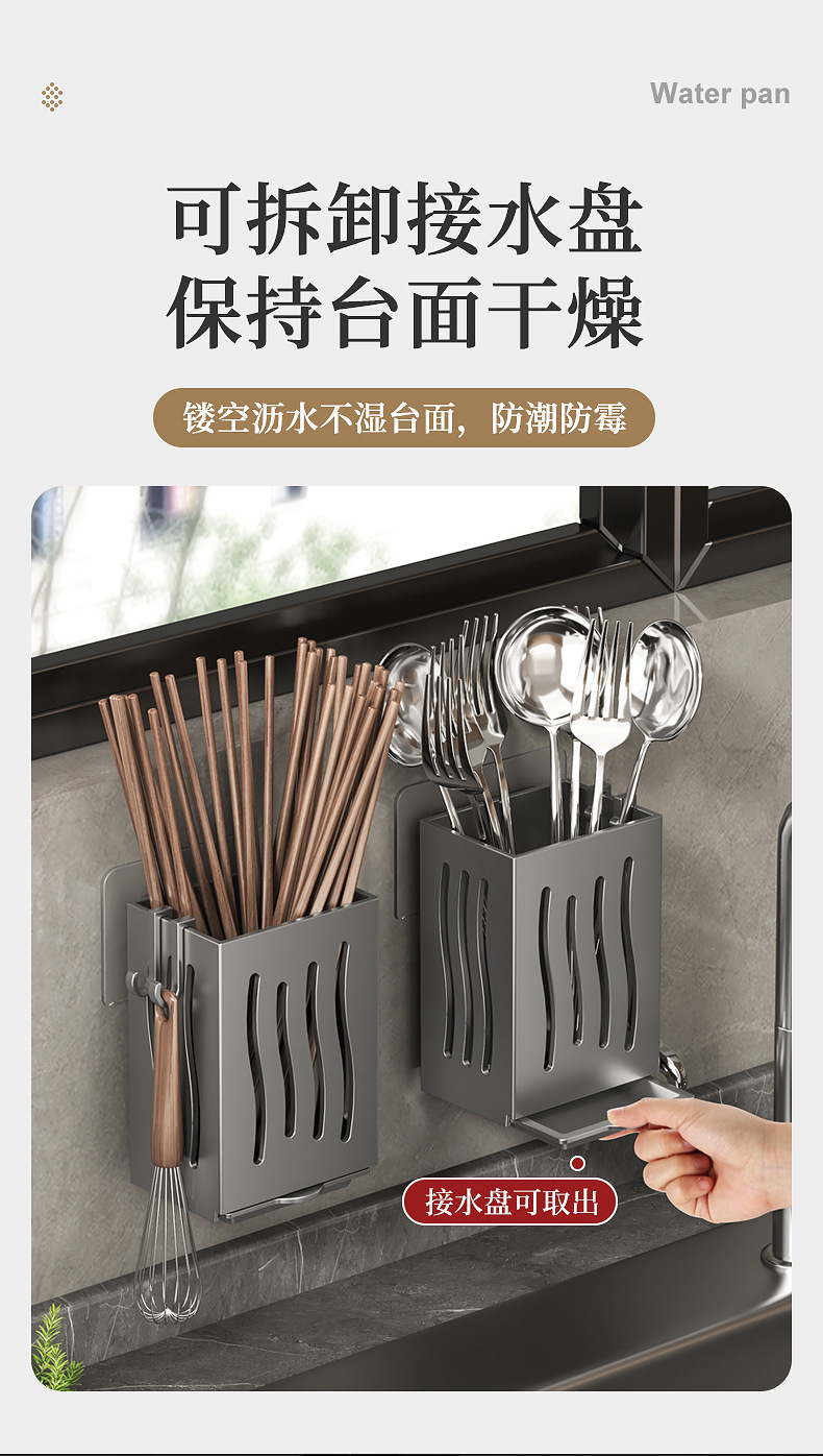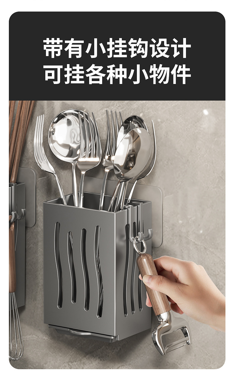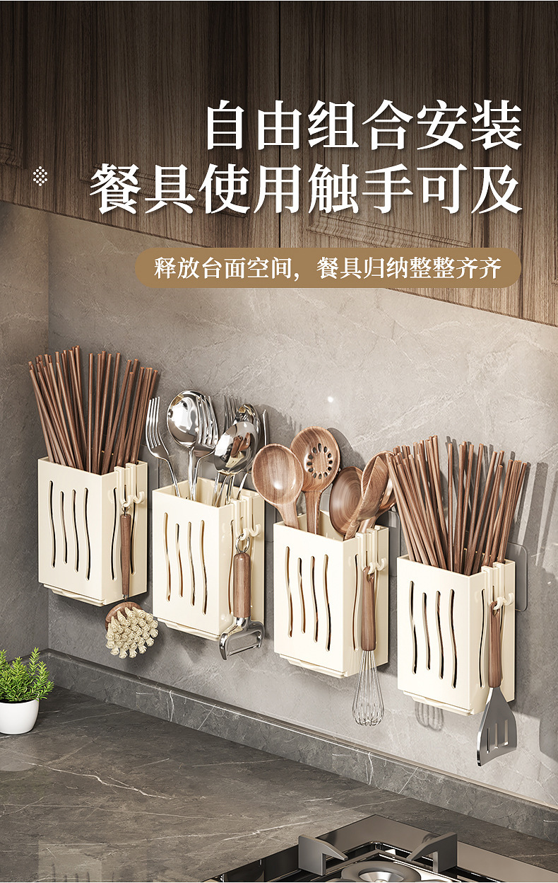 源头工厂壁挂式多功能筷子筒厨房免打孔餐具收纳沥水勺子置物架