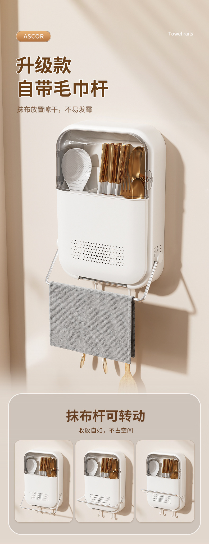 【奶油色/升级款】配2个挂钩+毛巾挂杆