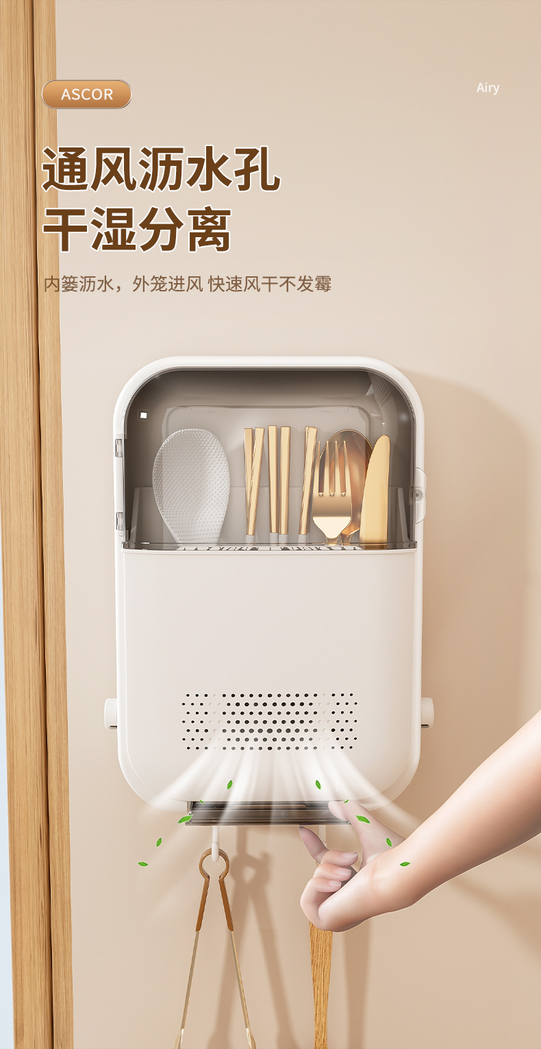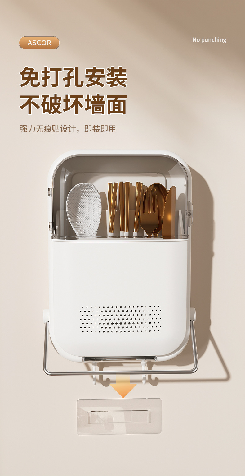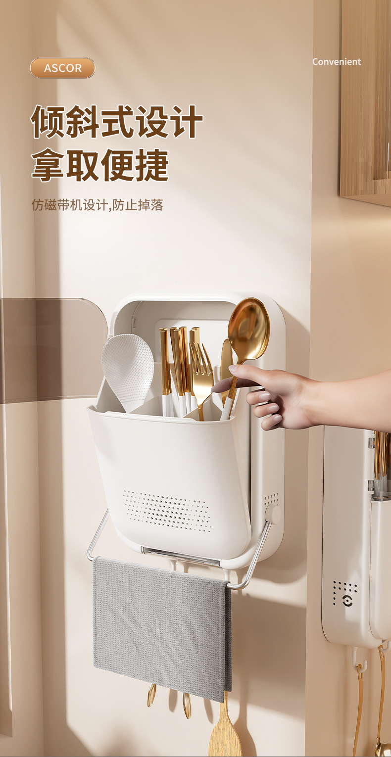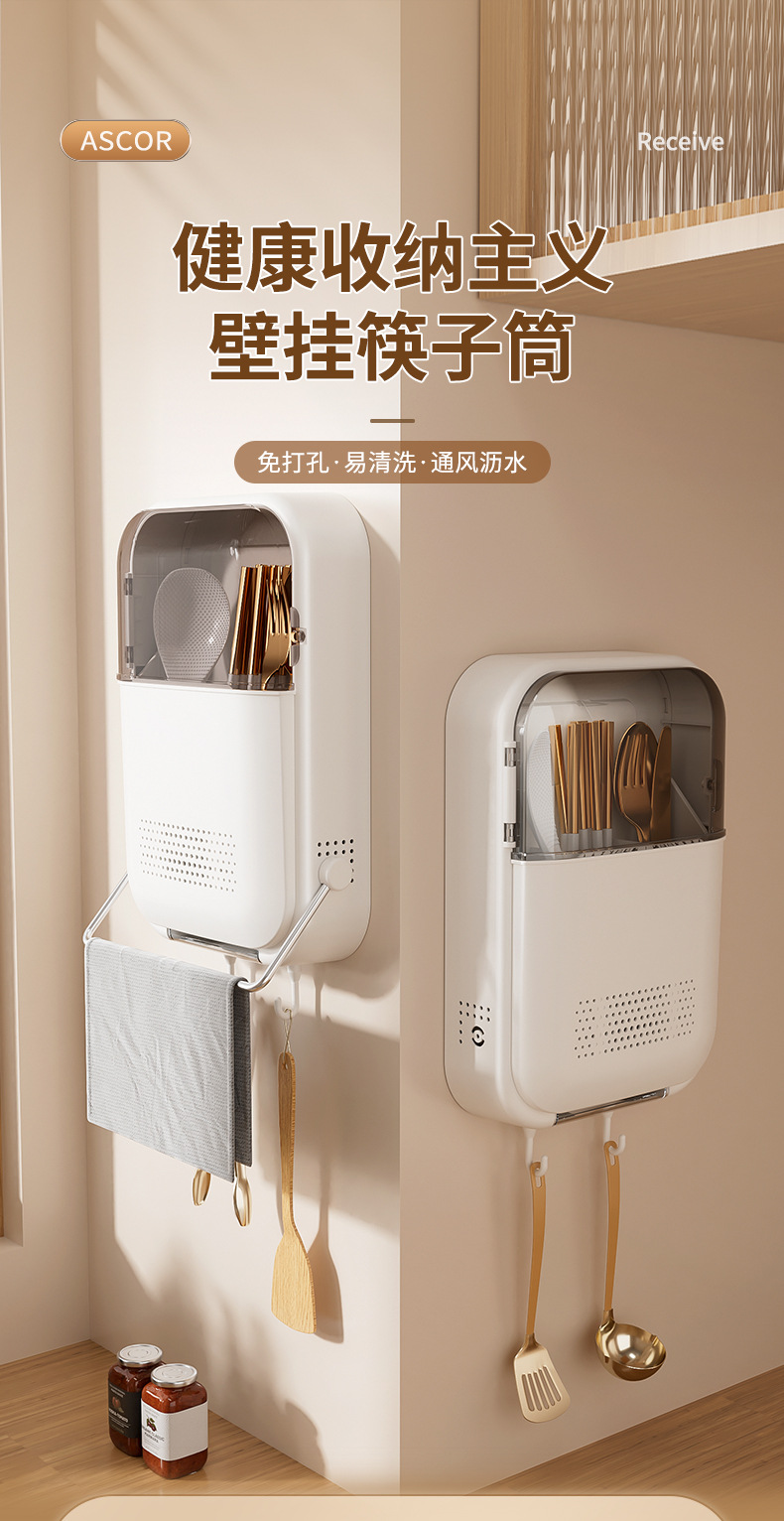 筷子筒筷笼免打孔厨房置物架勺子收纳桶塑料挂墙式沥水筷子收纳盒