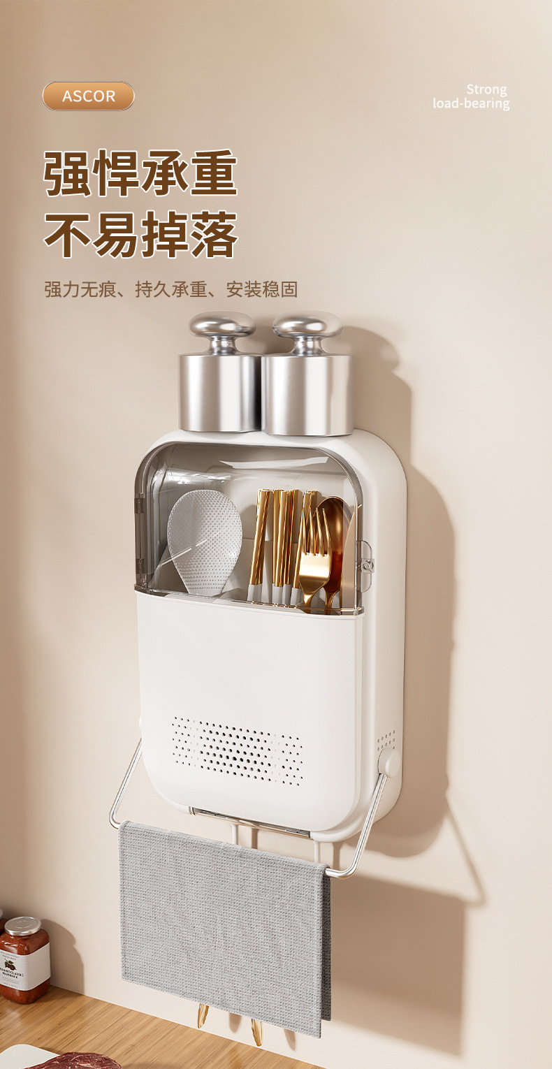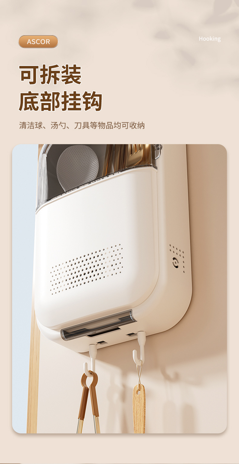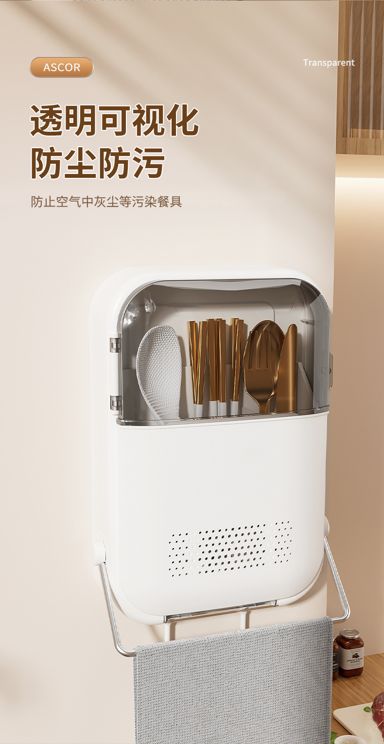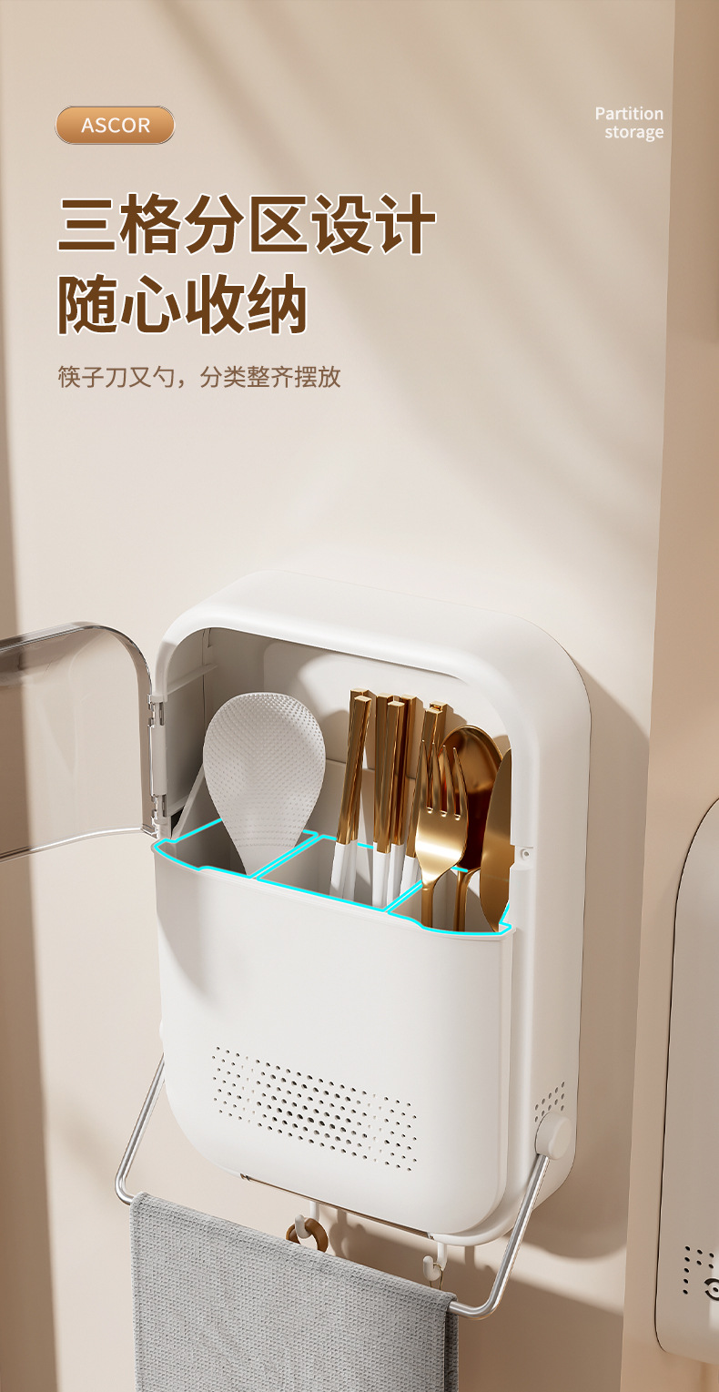 筷子筒筷笼免打孔厨房置物架勺子收纳桶塑料挂墙式沥水筷子收纳盒
