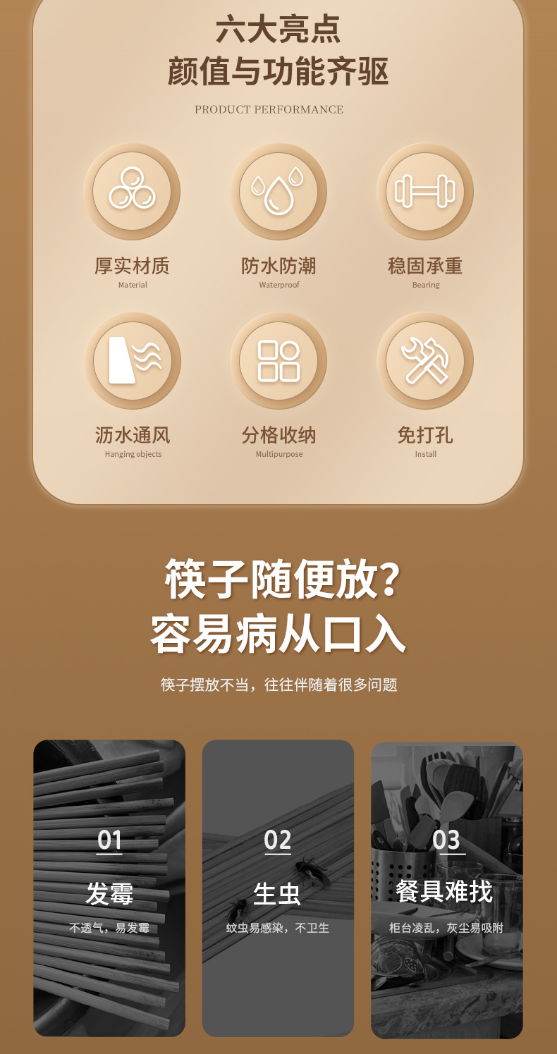 商品名称:筷子筒筷笼免打孔厨房置物架勺子收纳桶塑料挂墙式沥水筷子收纳盒