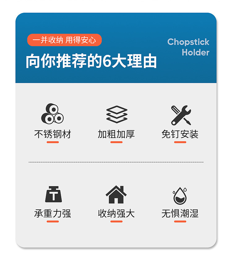 商品名称:筷子筒置物架壁挂式免打孔不锈钢家用一体筷筒刀架筷笼架厨房收纳