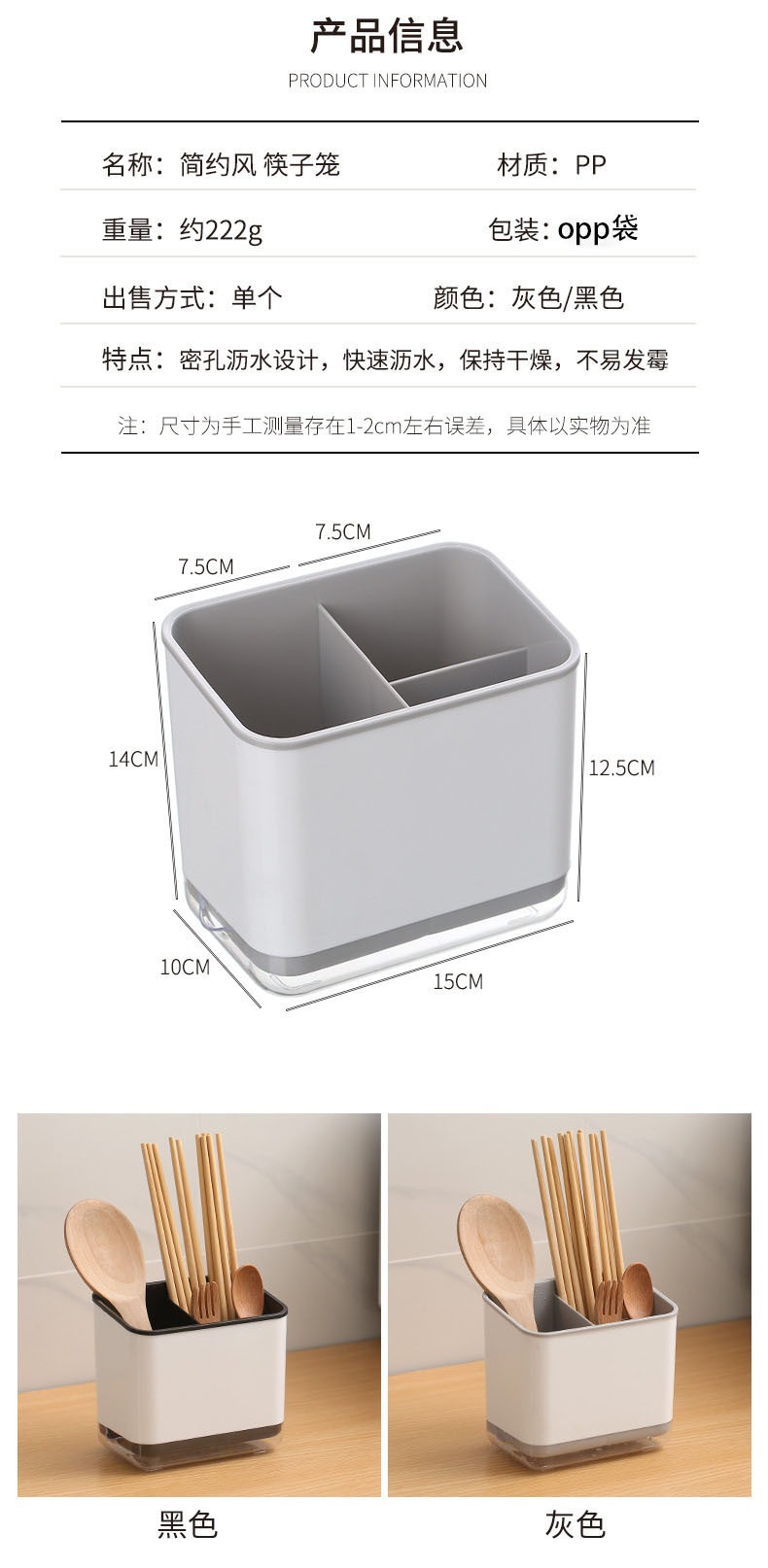 商品名称:多功能筷子收纳盒沥水筷子笼家用厨房台面筷子筒餐具筷勺子收纳盒
