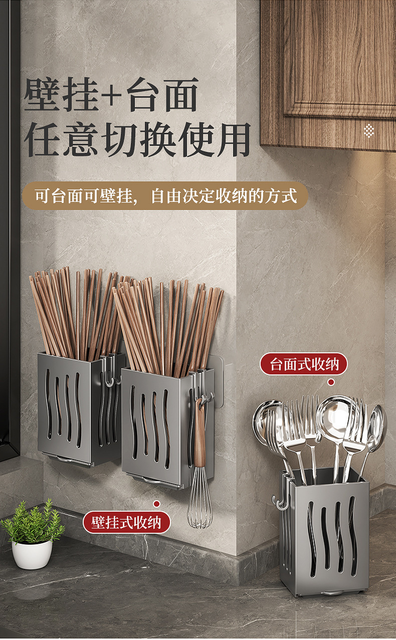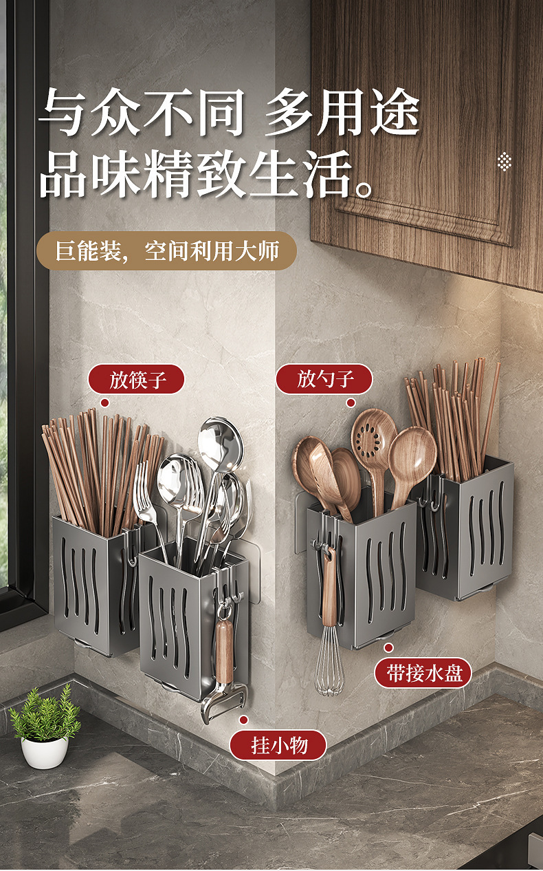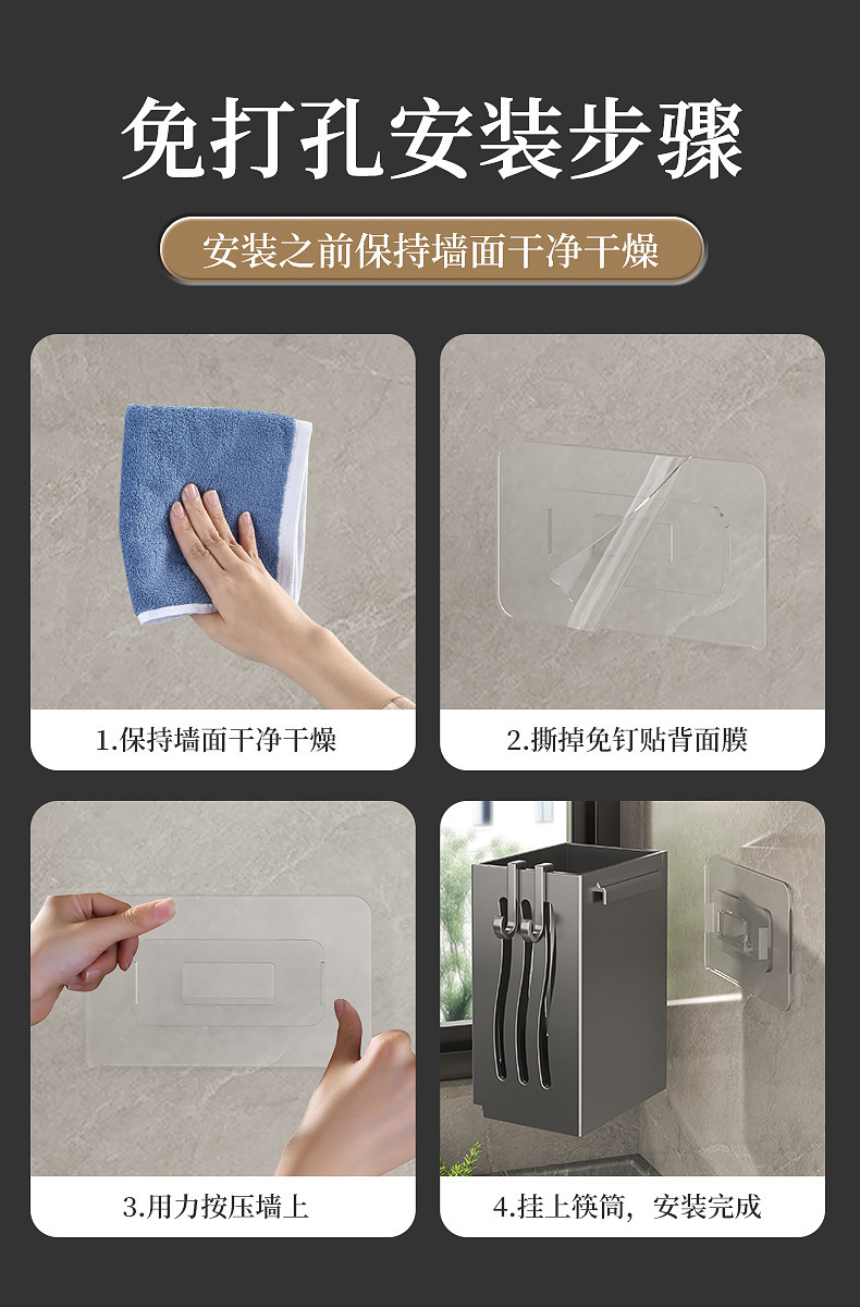 家用沥水架刀叉收纳盒筷子筒厨房筷子笼免打孔壁挂式餐具置物架
