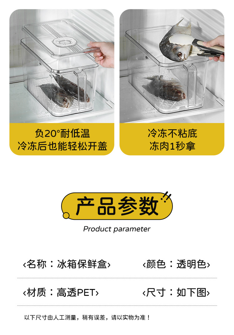 商品名称:冰箱收纳盒食品级厨房食物蔬菜抽屉式保鲜盒冰箱专用冷冻储物盒