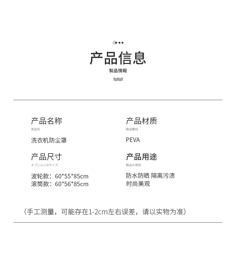 商品名称:PEVA洗衣机防尘罩 防水整理袋 布艺折叠 滚筒洗衣机罩盖布