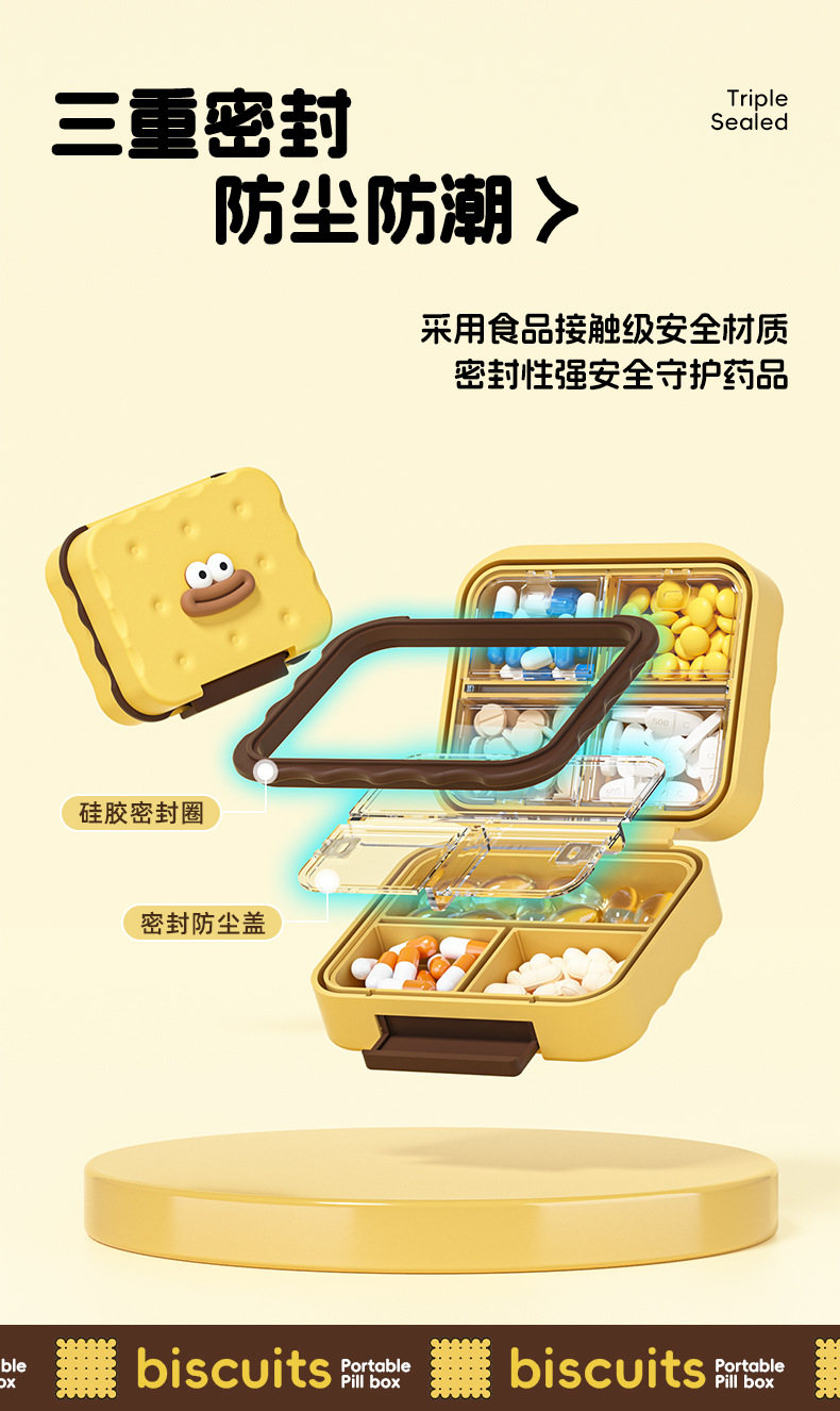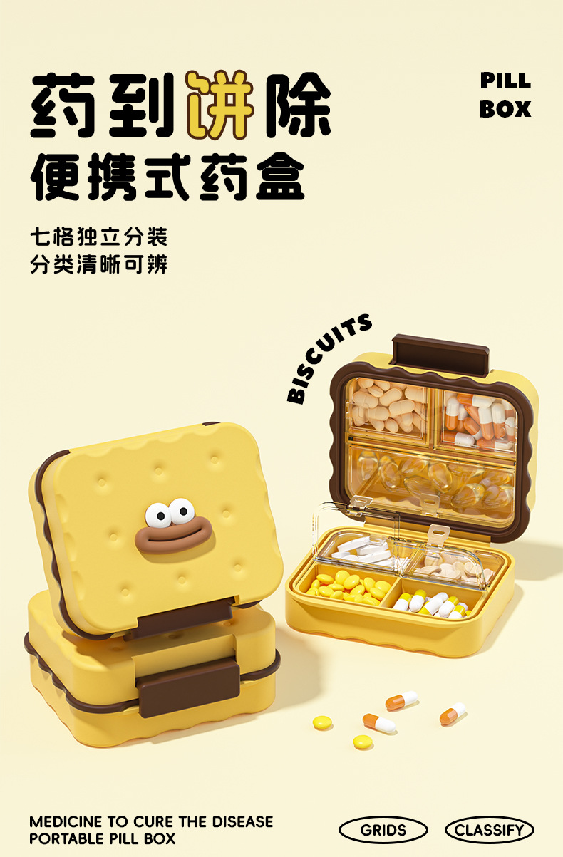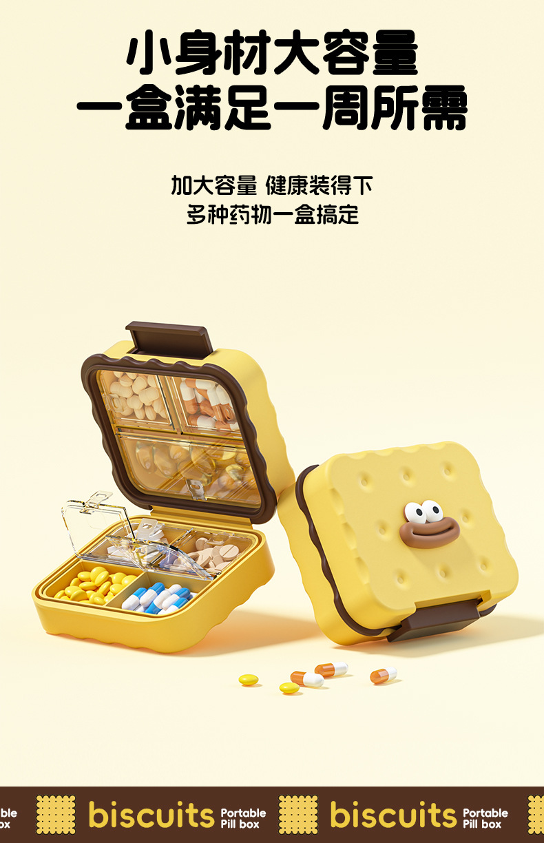 商品名称:便携药盒大容量防潮密封药品收纳盒随身迷你药片分装器一周七天