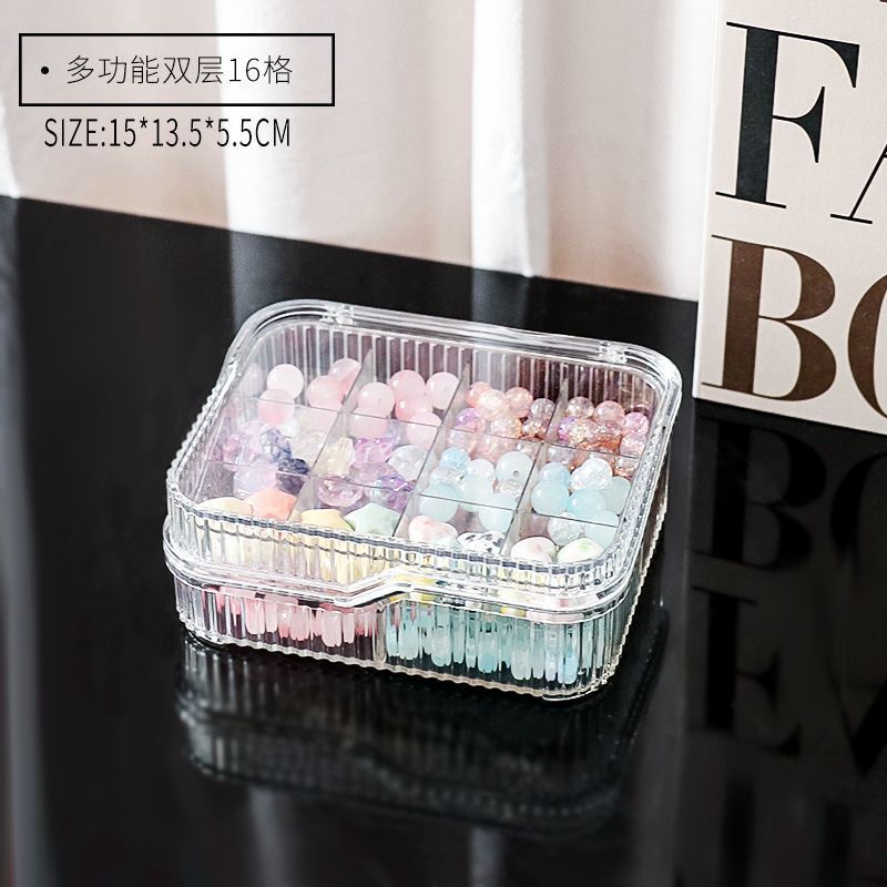 *珠子收纳盒串珠多层多格大容量饰品透明抽屉式桌面储物箱